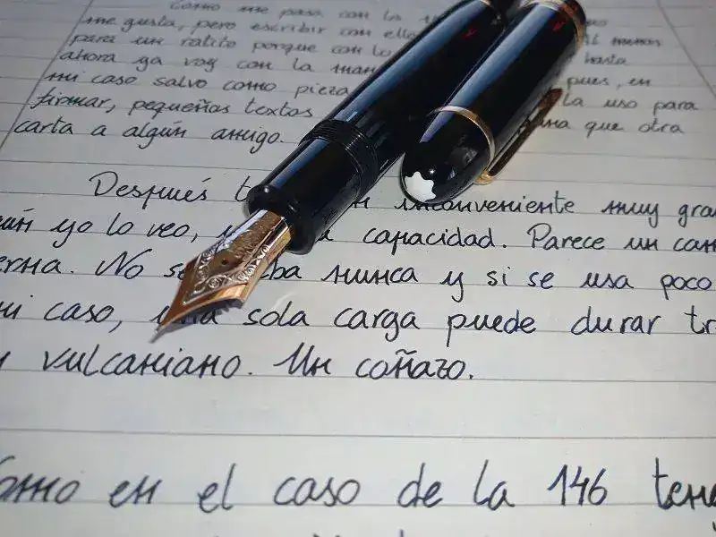 Como la 146, la pluma no me gusta, pero escribir con ella es fantástico. Al menos para un ratito porque, con lo que llevo escrito hasta ahora, ya voy con la mano agobiada. Así pues, en mi caso, salvo como pieza de colección solo la uso para firmar, pequeños textos como este o alguna que otra carta a algún amigo.