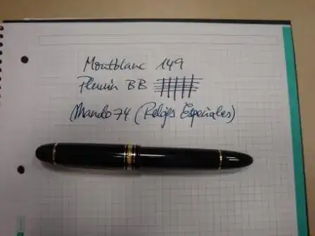 a la venta "LA REINA", una MB 149 moderna, estándar, pero con un detalle especial: un plumín BB de esos un poco planos, anchos y jugosos que nos gustan a tantos. Estos plumines BB no son fáciles de encontrar a la venta, la mayoría de las que se venden son F o los M. La pluma no hace falta describirla, un plumón en todos los sentidos.