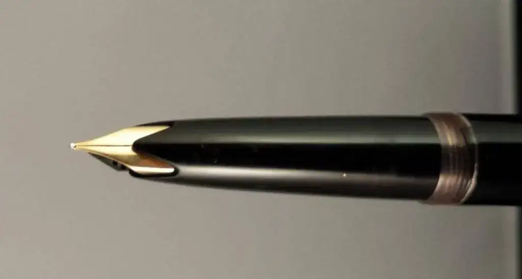 y esta también es una 32 (y también de carga por pistón) pero con plumín ancho tipo wing en acabado burdeos, de fabricación anterior (1961-66)