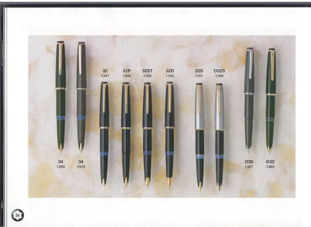 por completar el excelente resumen de Javier, sólo decir que la 32D tenía un plumín distinto especial para hacer copias "carbon copy", y que la 32S (que tenía versiones con plumín estrecho y con plumín tipo "wing") tenía el capuchón plateado.