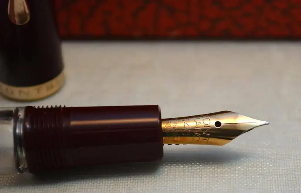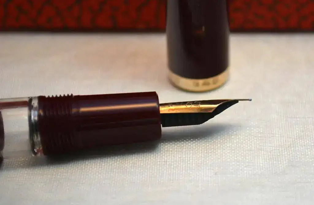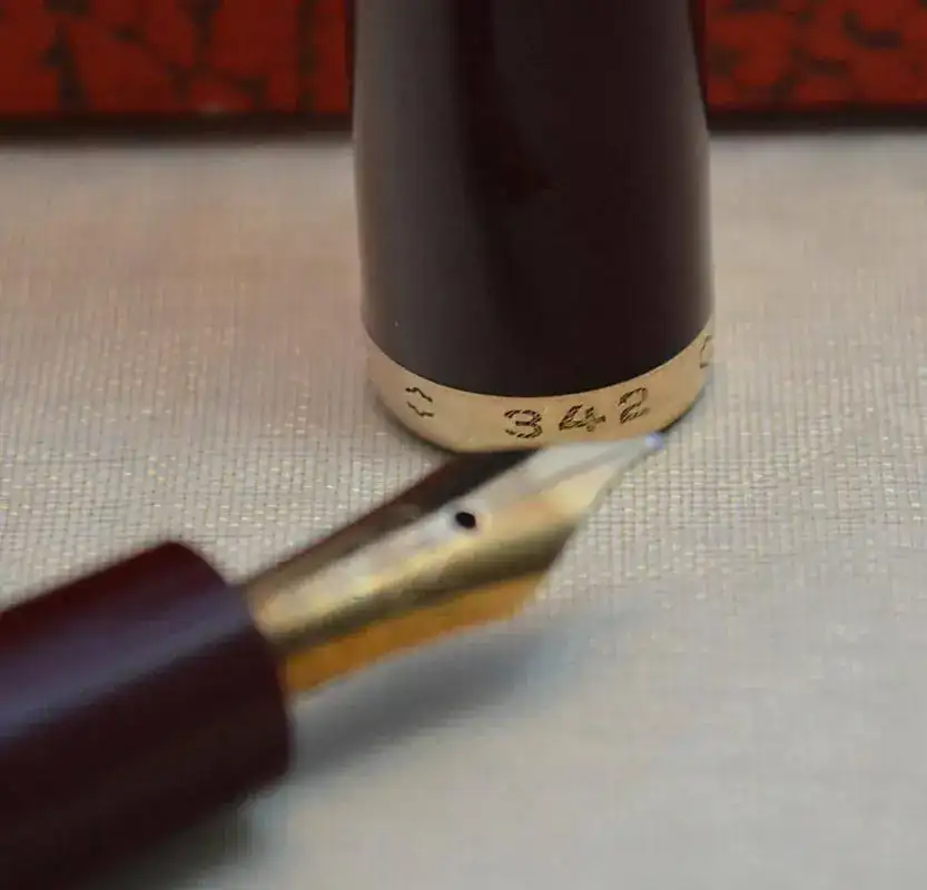 La pluma tiene un plumín de trazo Extra Fino semiflexible IR3, muy suave. El alimentador es de ebonita.