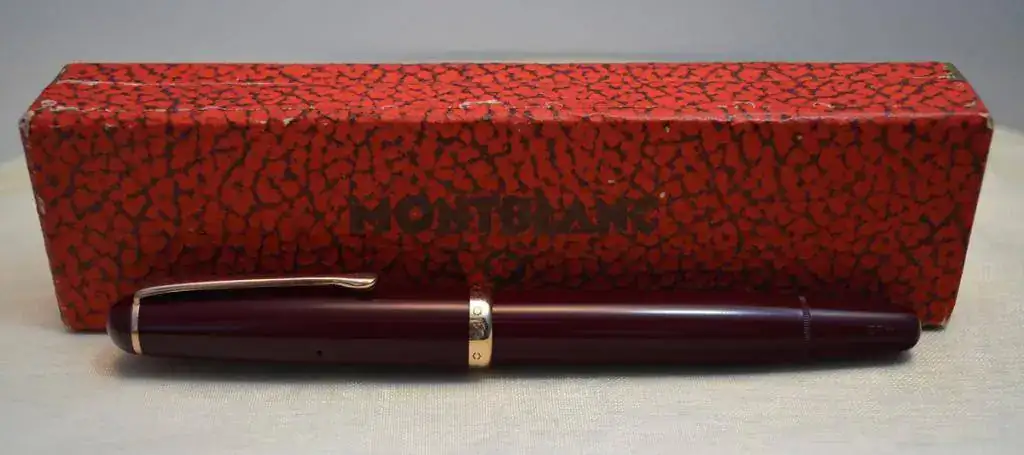 Ofrezco para su venta esta estilográfica Montblanc modelo 342 con cuerpo de resina burdeos y detalles chapados en oro.