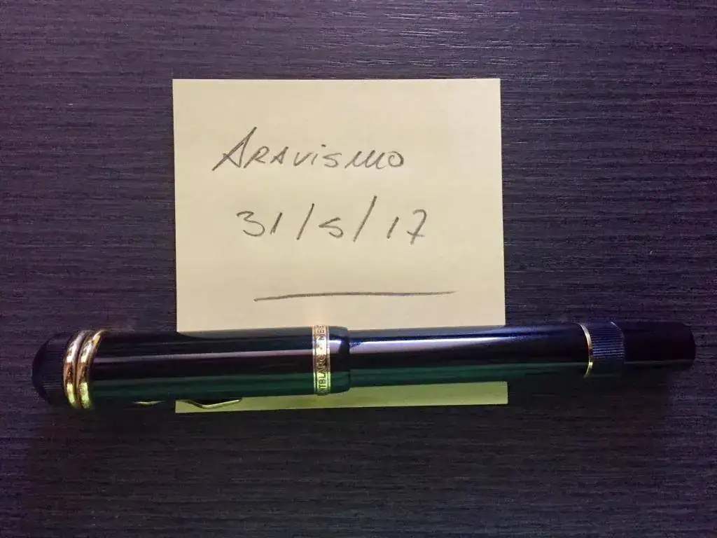 Comprada nueva en 1993. Estado nueva e impecable nunca cargada, no puedo garantizar que se haya usado para probar el plumín mojándolo en tinta. En aquella época era practica habitual. Plumín M según pegatina
