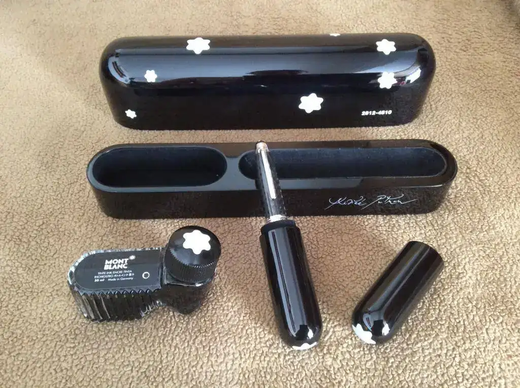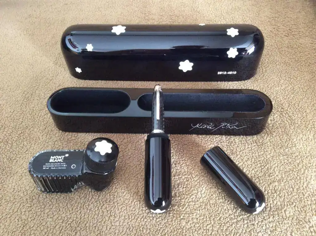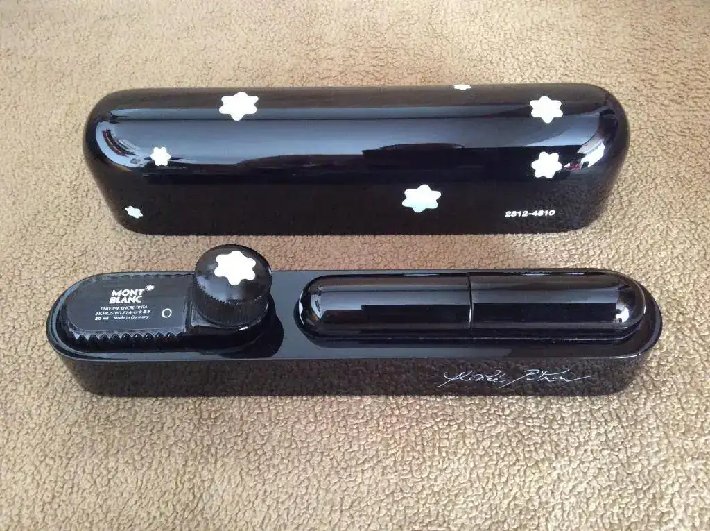 Caja-estuche Montblanc en madera lacada Andree Putman ( Edición limitada 4810 piezas ). Con tintero y estuche interior para pluma 149 o similar (no se incluye la estilográfica de la foto). Medidas 30x8,5 cm.
