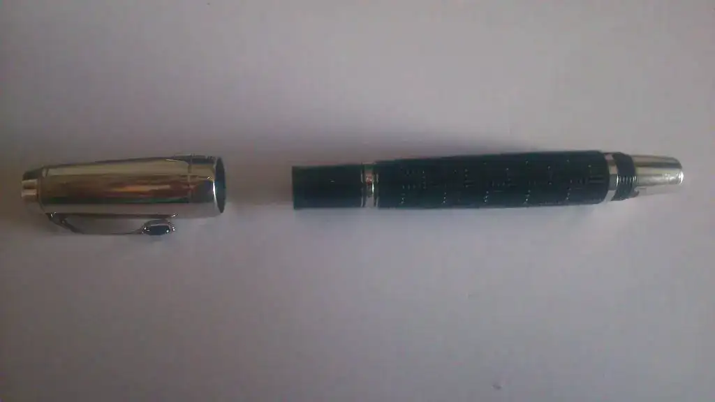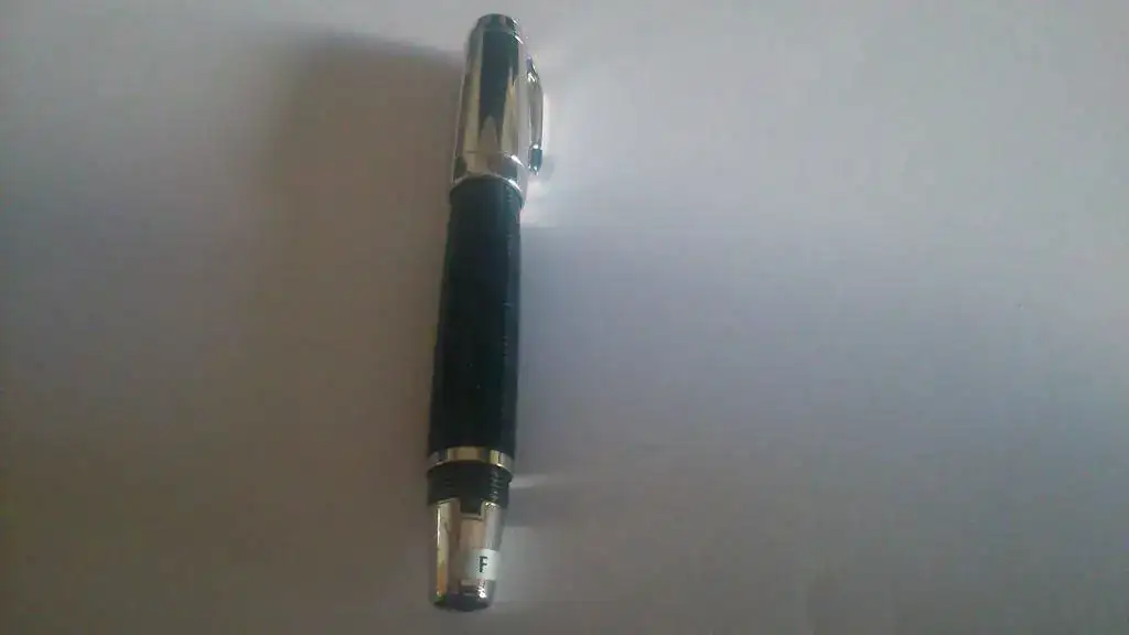Plumín en punto Fino, tal y como señala la pegatina indicadora del grueso de escritura.