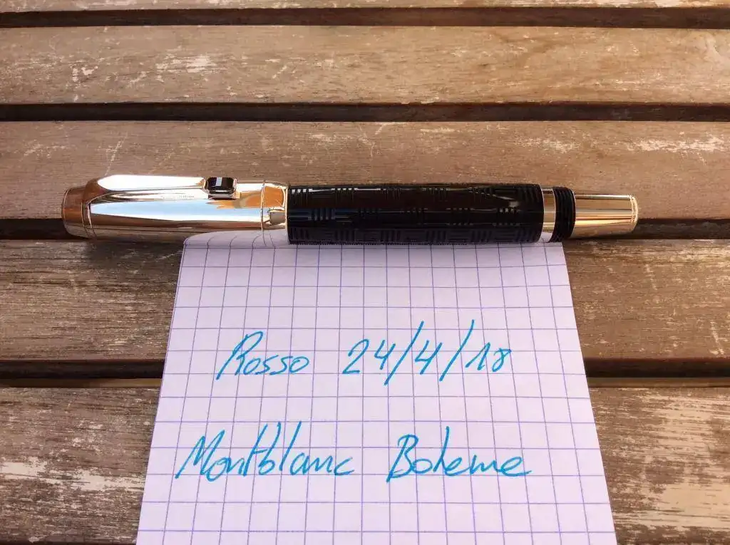Vendo Roller Montblanc Boheme Doue en el estado que veis en la foto, muy bueno. La carga que lleva es la azul de UNICEF. Caja y librito Montblanc.