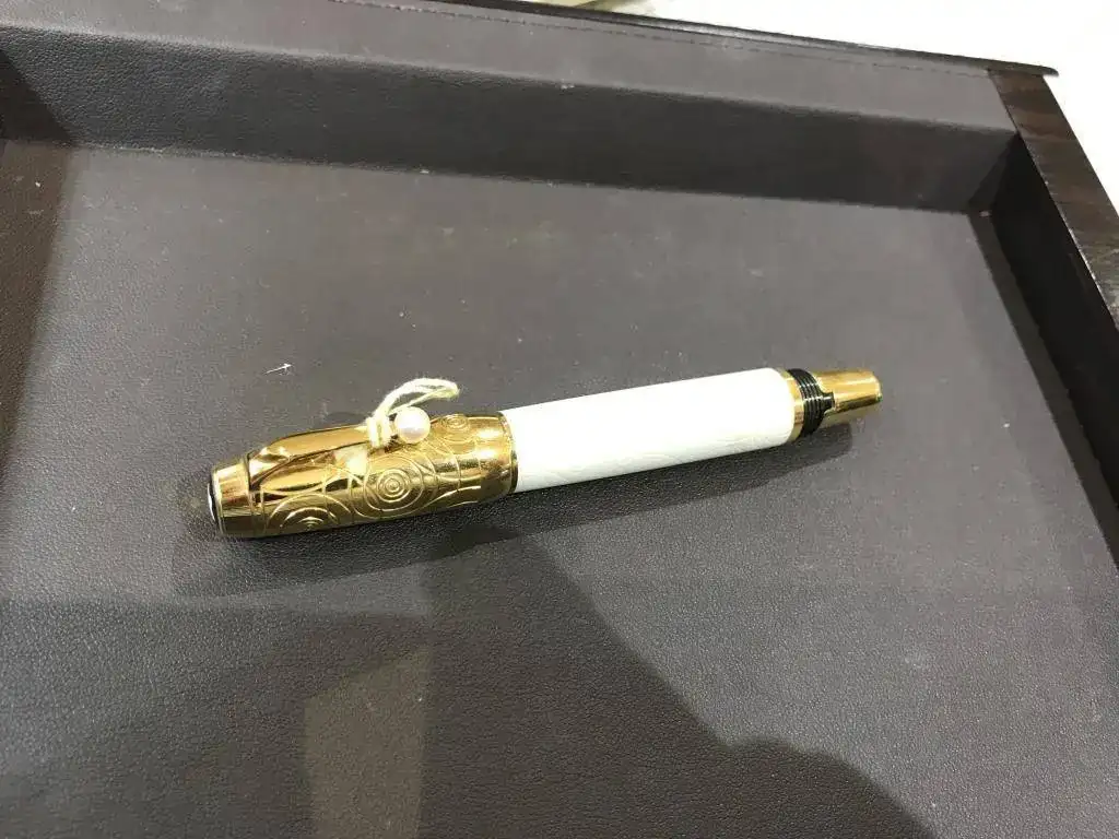 Bohème Blanche es una exaltación de la atención de Montblanc por los detalles. Los artículos de escritura de la colección están grabados con un motivo de ondas en filigrana que evoca el diseño de los relojes de la colección Bohème. Capuchón dorado con pela. El cuerpo de nácar .blanca da vida a una auténtica joya de la cultura de escribir Montblanc.