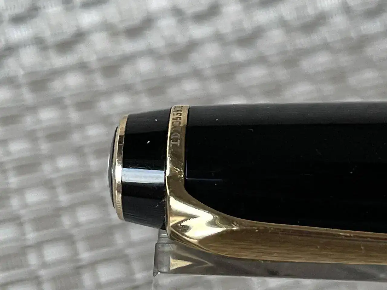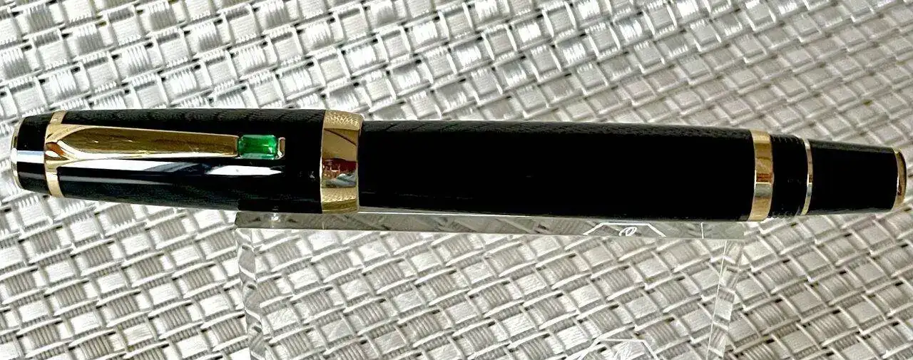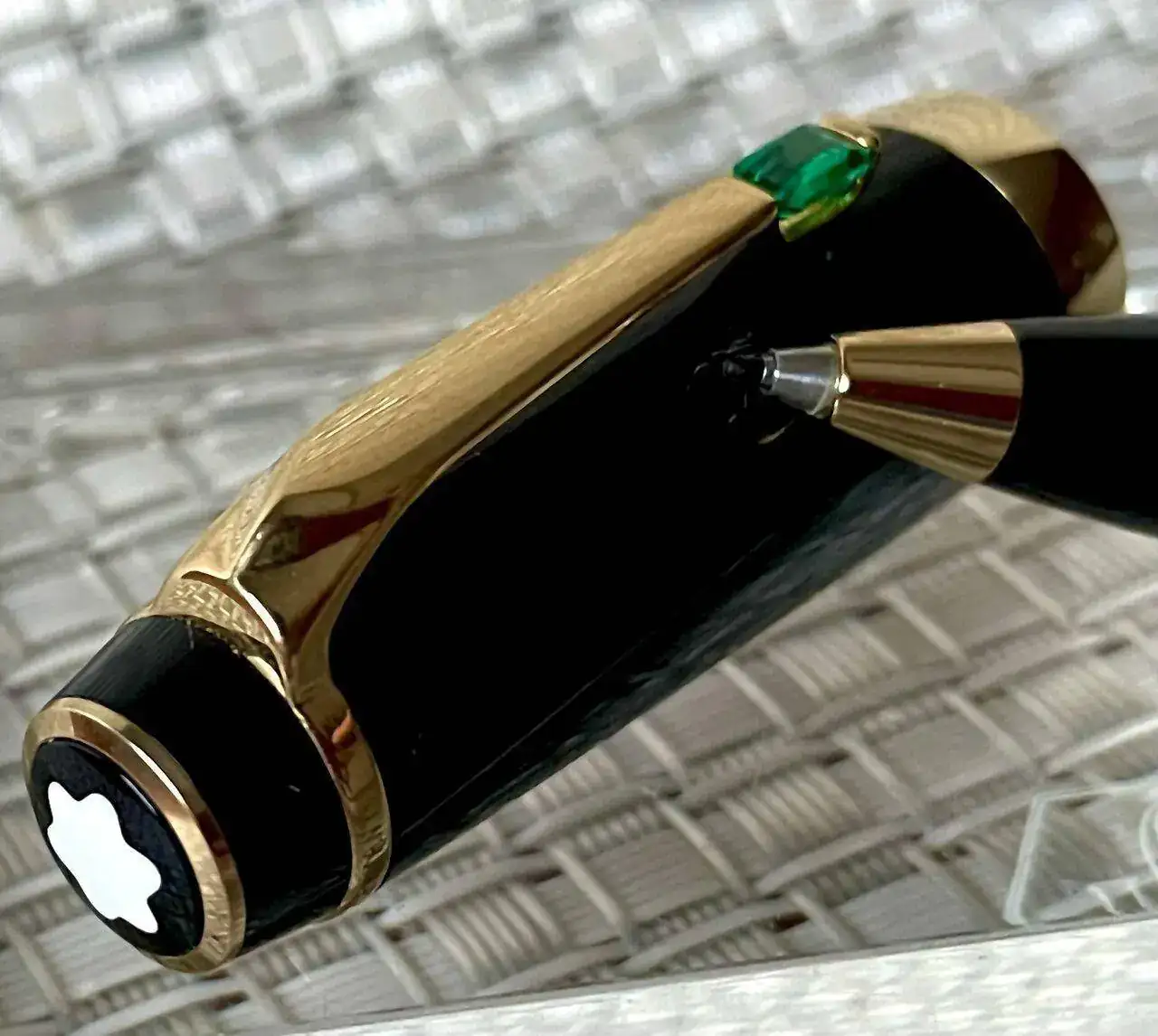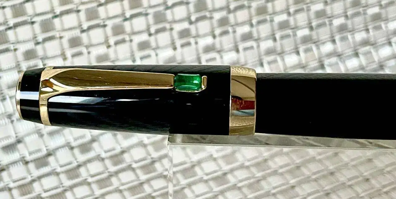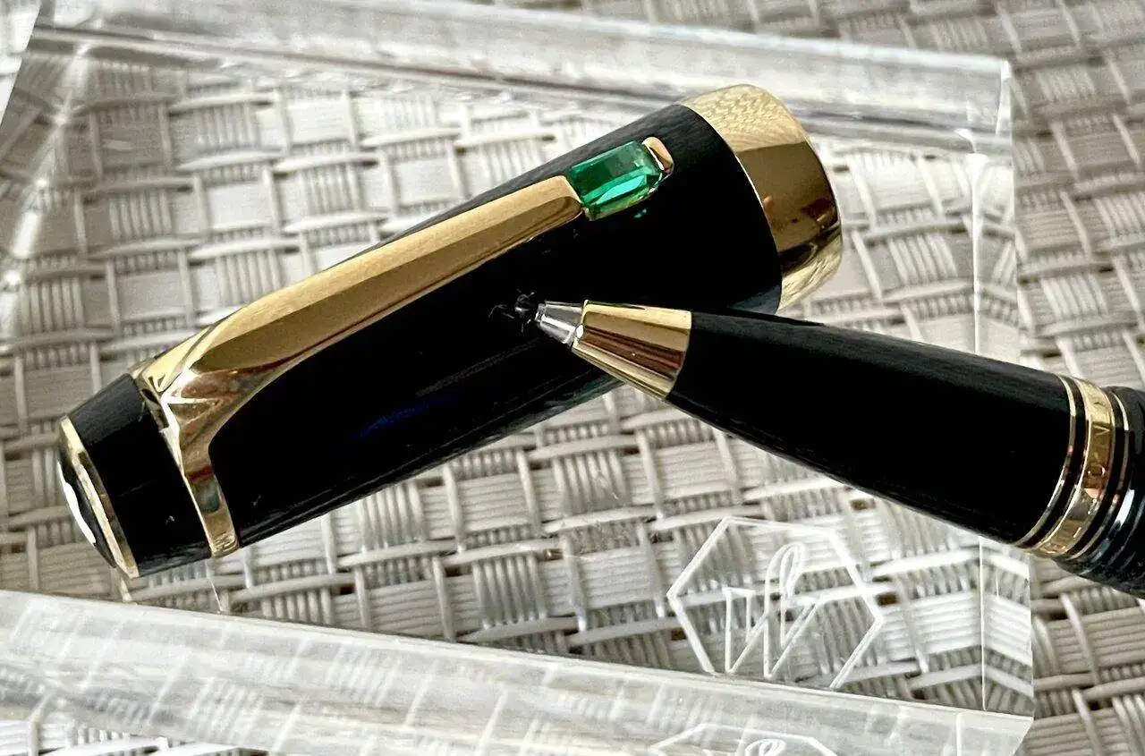 Roller Montblanc Boheme Gold con piedra verde esmeralda en el clip.