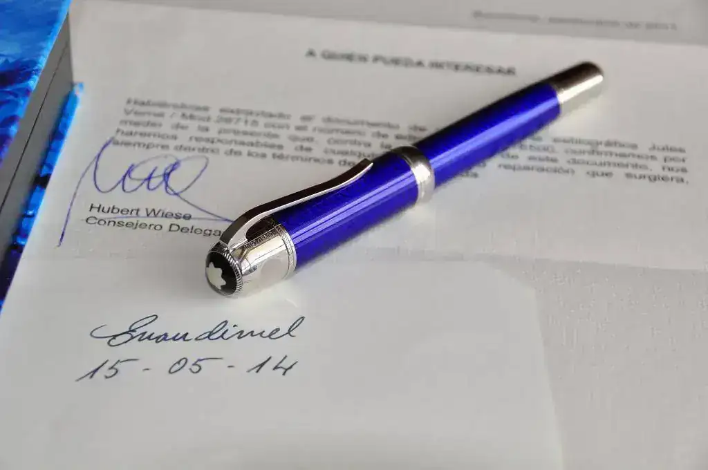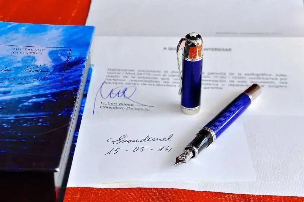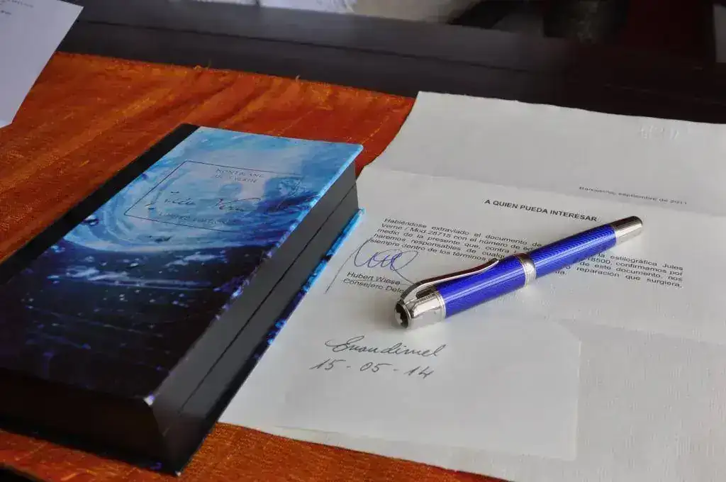 : Es una pluma que anduve buscando como mi santo grial hasta que la encontré en una papelería, pero tras comprarla me pareció un poco pesada y a los pocos días se la vendí a un forero que andaba buscando una igual (https://relojes-especiales.com/threads/busco-montblanc-jules-verne.184568/).Hipnotizado por el hechizo de su color azul, tardé poco en arrepentirme de no haber meditado más la venta