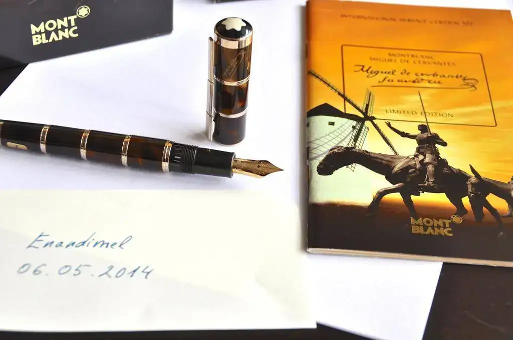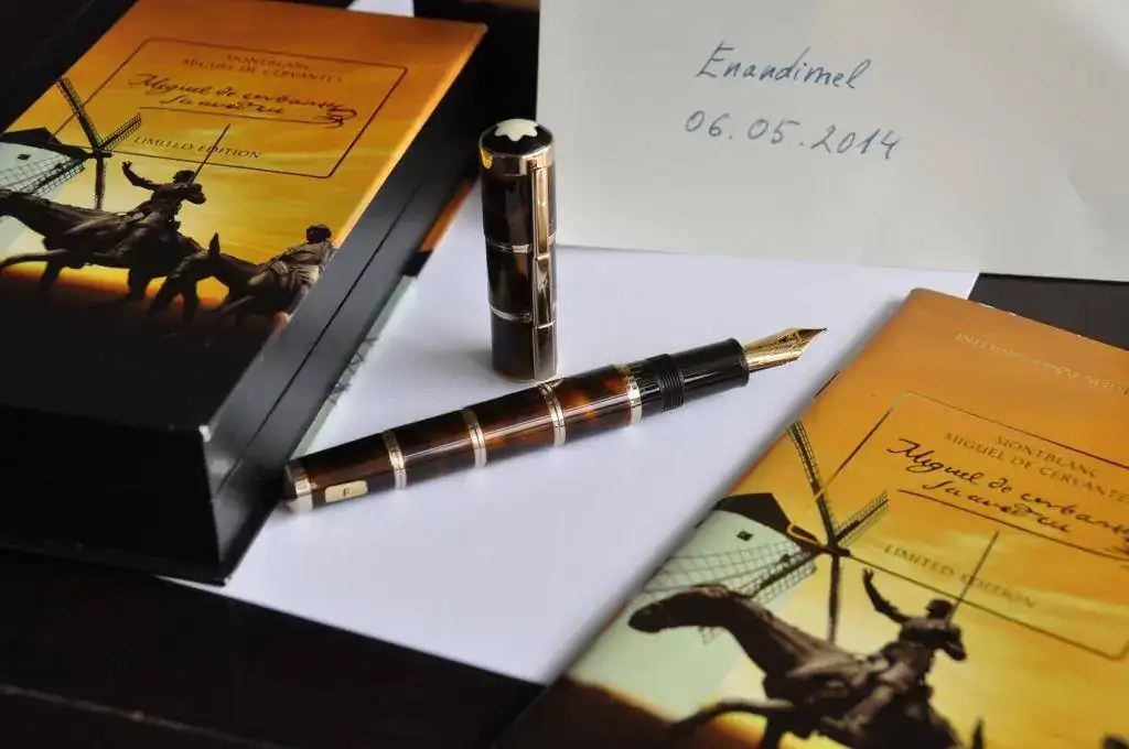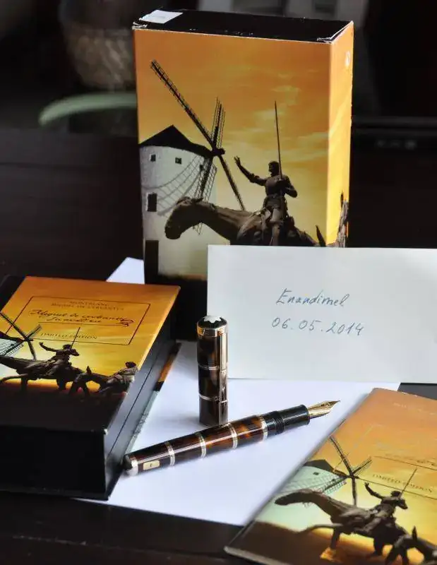 Se trata de la edición limitada de Montblanc dedicada al más insigne escritor de nuestras letras, D. Miguel de Cervantes, y que salió a la venta en el año 2005. Su diseñó esta inspirado en los molinos de viento, y su forma piramidal en direcciones opuestas simboliza los diferentes caracteres de D. Quijote y de Sancho Panza, y el clip emula a las aspas de los molinos.