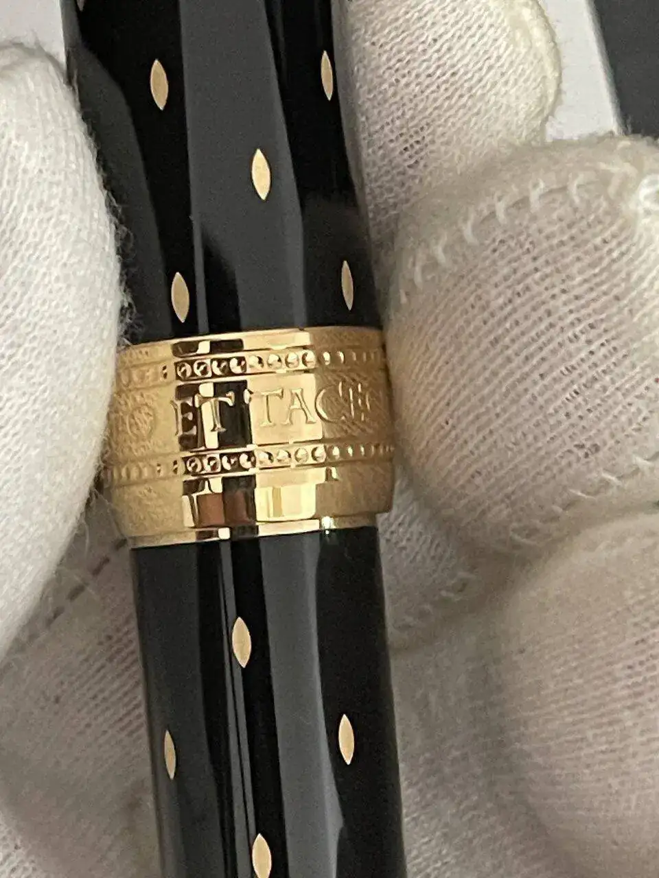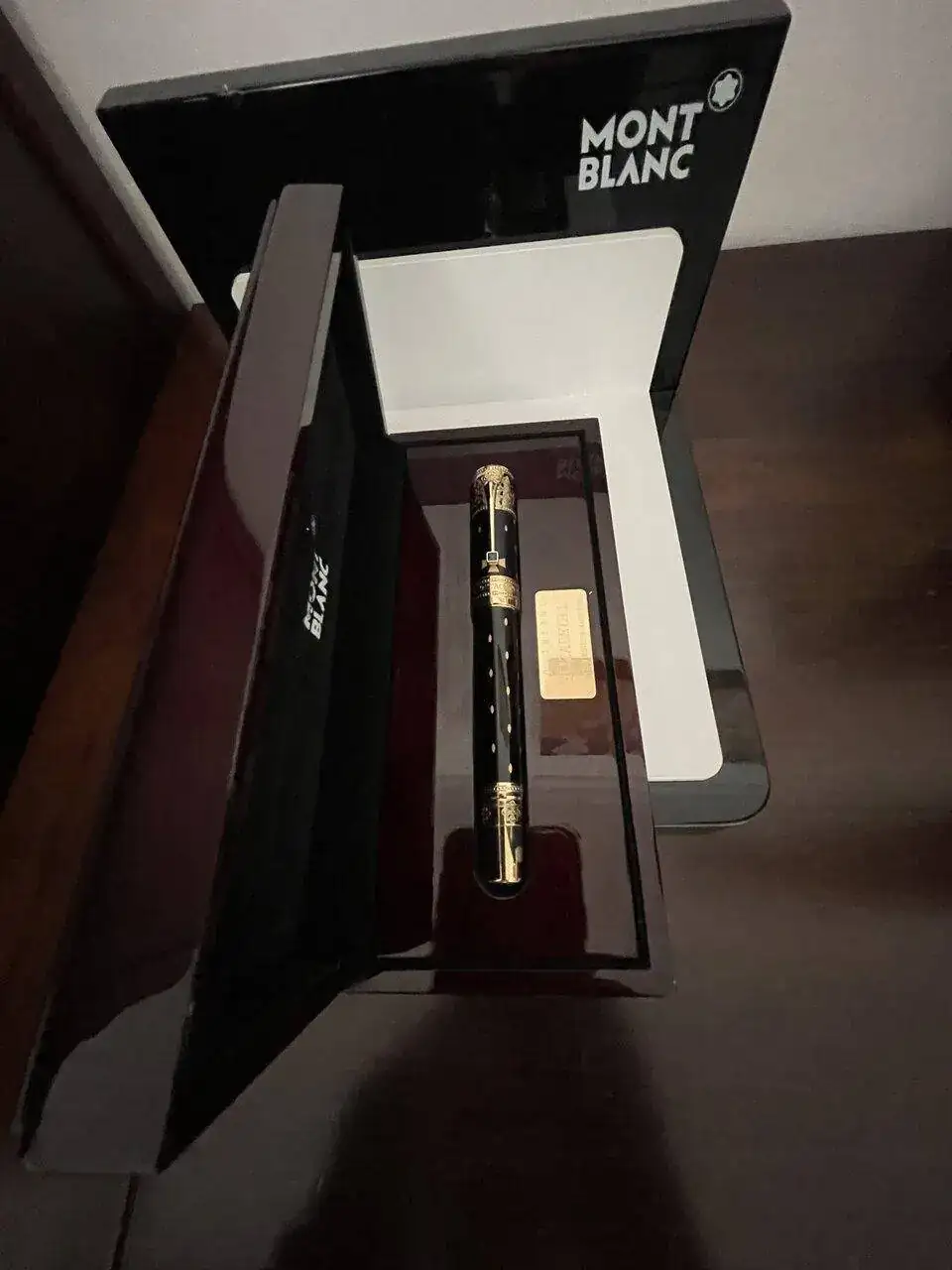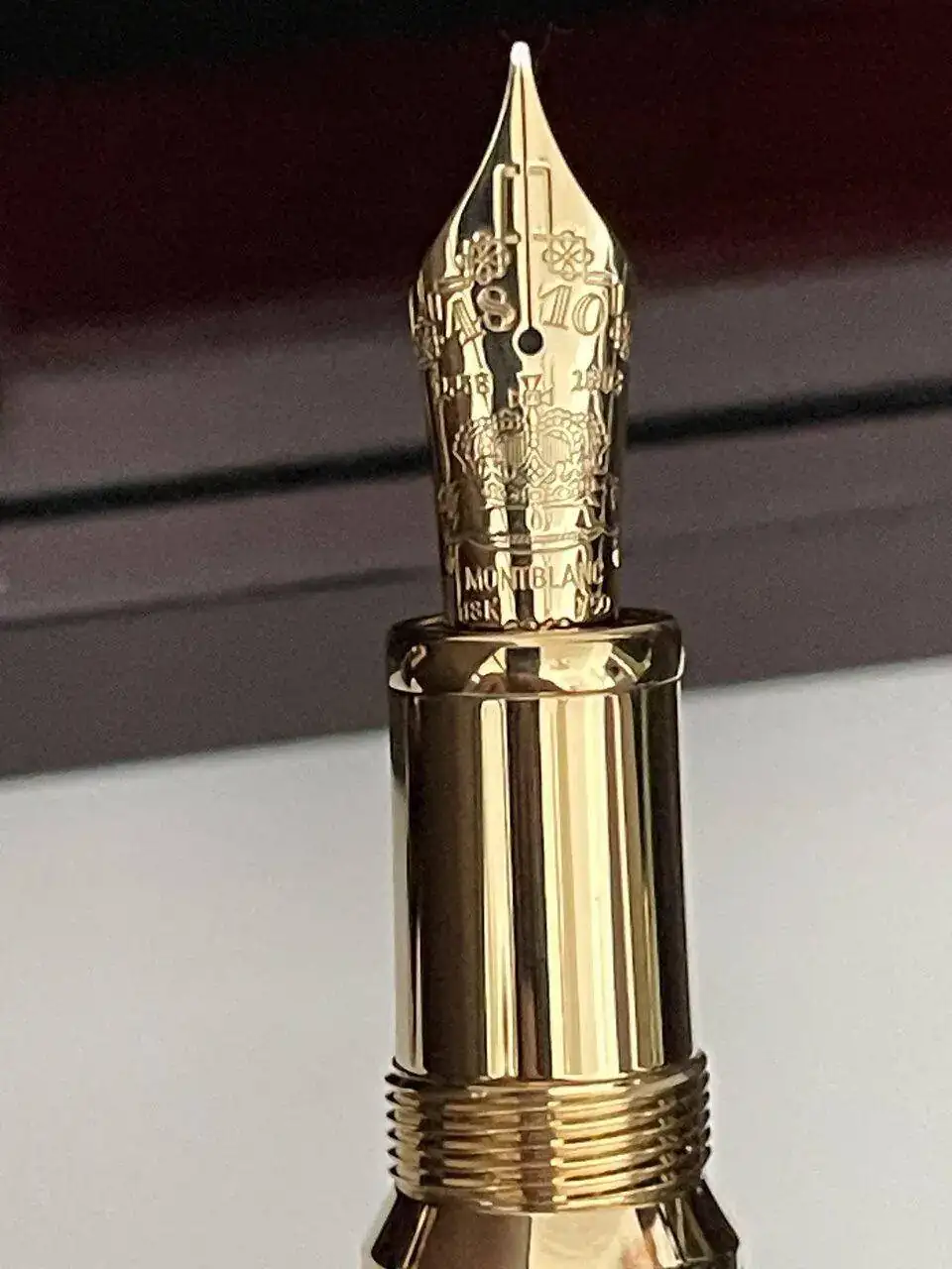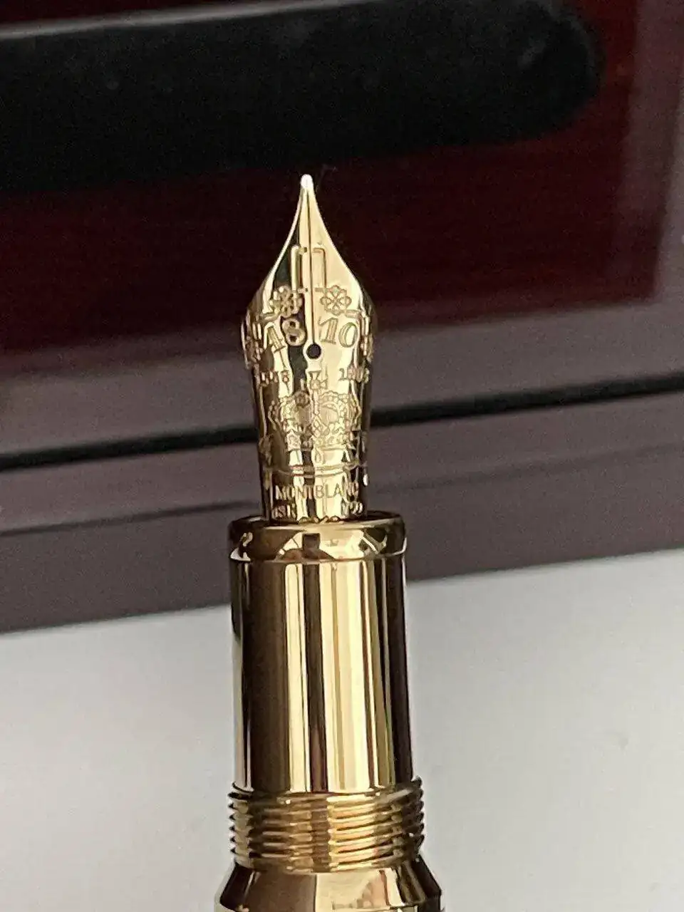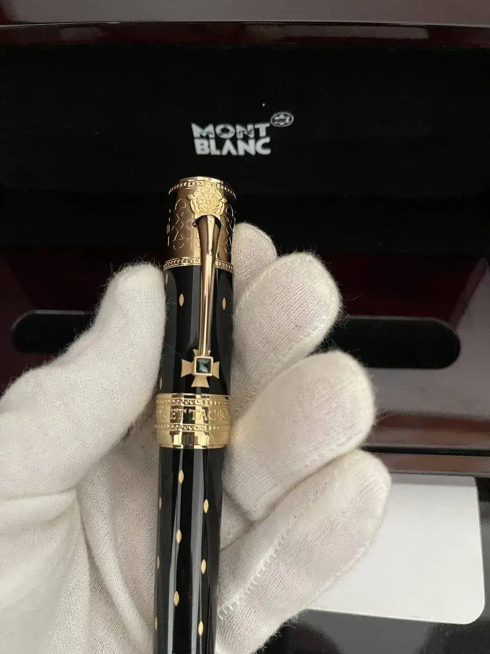 Pongo a la venta Pluma Montblanc, Patrono de las Artes Queen Elisabeth I, Edición Limitada 4810, fabricada en plata con plaque de oro, clip y plumin F de oro de 18 K, Cuerpo y capuchón de resina preciosa negra con incrustaciones bañadas en oro, granate color verde, carga con pistón, sobre caja, caja de madera y documentación, ES NUEVA SIN USO, precio 3.100 € incluidos gastos de envío.