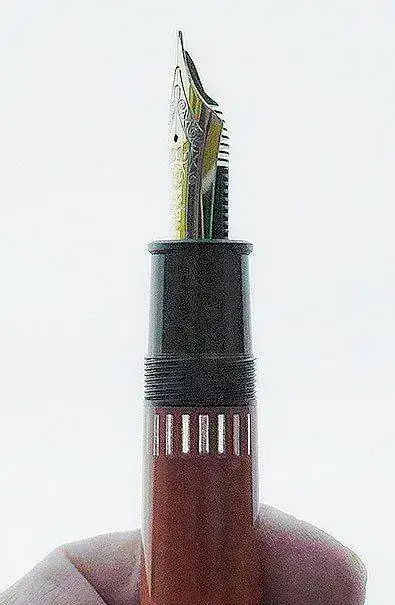 La pluma está impoluta, si tiene alguno de los que llamamos pelillos, que yo no aprecio, debe ser de cuando se coje y poca cosa más. Conserva perfectamente el baño de oro de la firma del escritor muestra clara de que no ha sido usada pues de otra forma si que acaba desapareciendo.