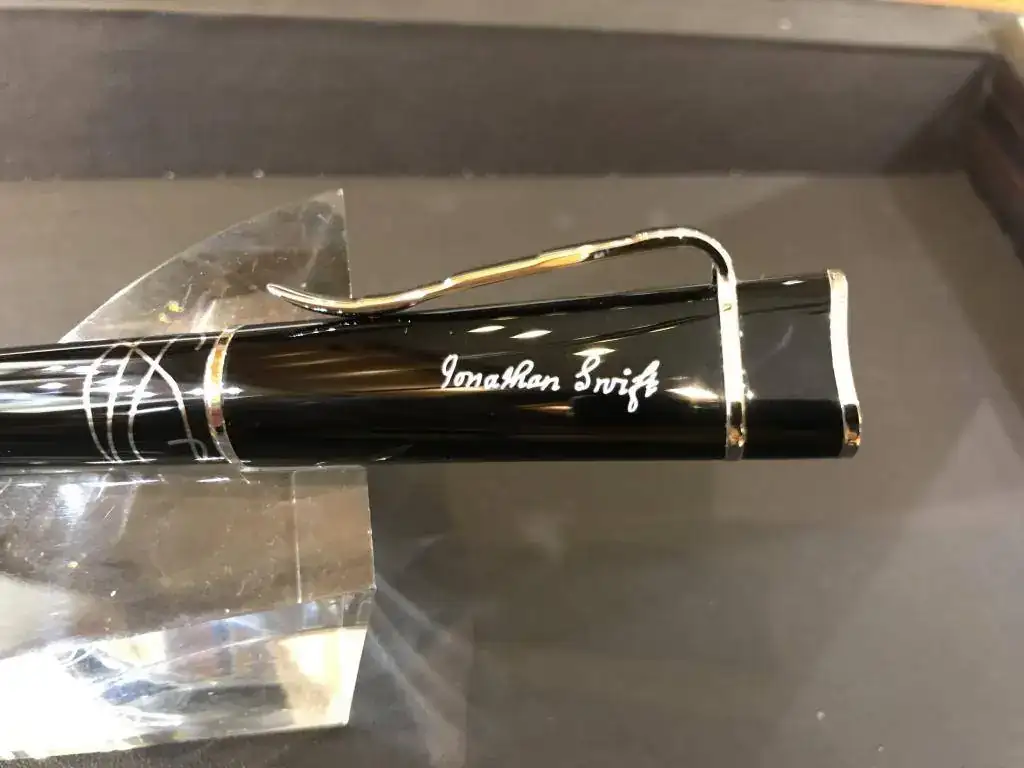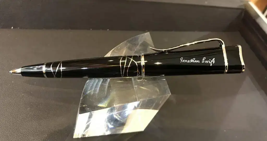 Tributo a Jonathan Swift, el escritor irlandés que probablemente fue el primer escritor satírico en prosa inglesa. Su obra más famosa, “Los viajes de Gulliver”, publicada en 1726, narra los viajes de Gulliver hacia diferentes países, reflejando sus experiencias políticas y denigrando las costumbres de clases privilegiadas en Inglaterra