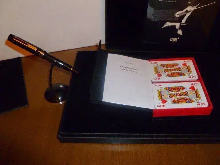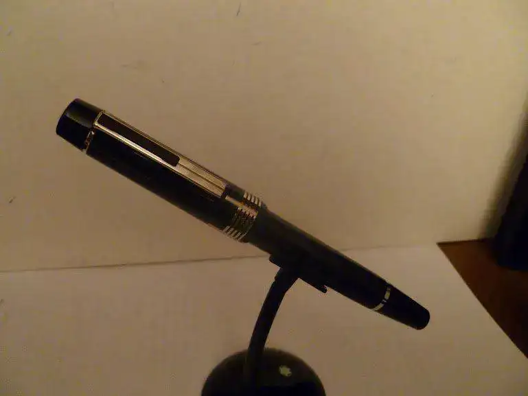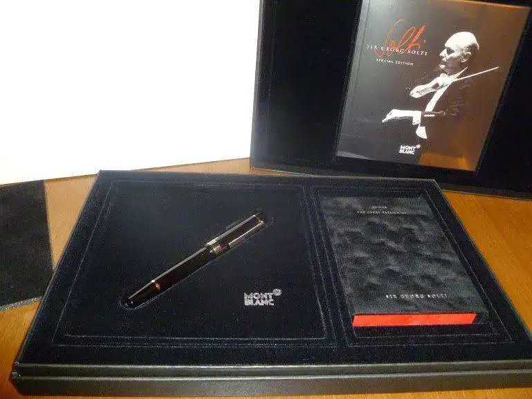 Estilográfica Montblanc George Solti, totalmente nueva, con dos años de garantía (en realidad hasta Enero de 2017) sellada en establecimiento autorizado. Está sin utilizar, en perfecto estado. Plumín de oro rodiado con punto "F". Sistema de carga por pistón típico de la marca. Tiene caja exterior original, cofre interior, juego de bridge, libro ilustrado y garantía sellada por el establecimiento autorizado donde se adquirió. Es una ocasión única de adquirir esta pieza totalmente nueva con una rebaja de precio muy sustancial. Si no aseguras el envío, me hago cargo de los gastos y de su perfecto estado, pero no de su extravío una vez depositada en Correos.