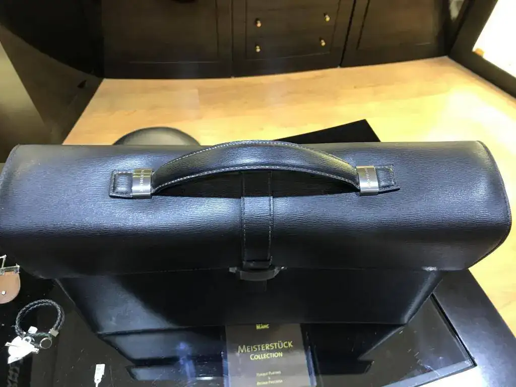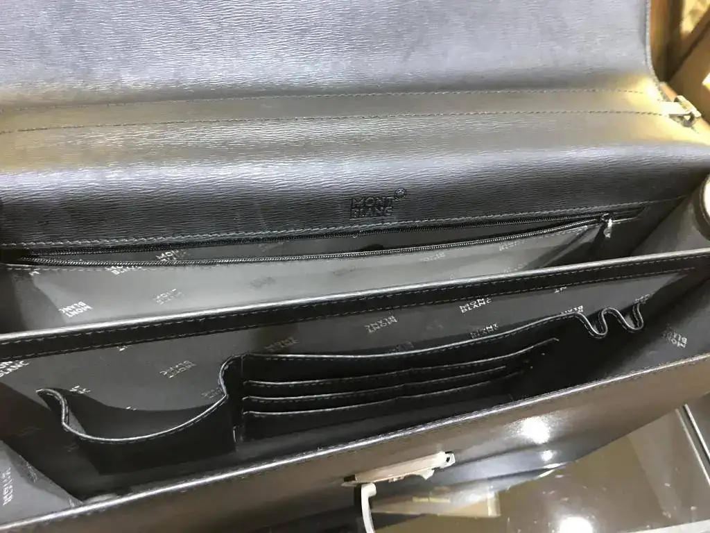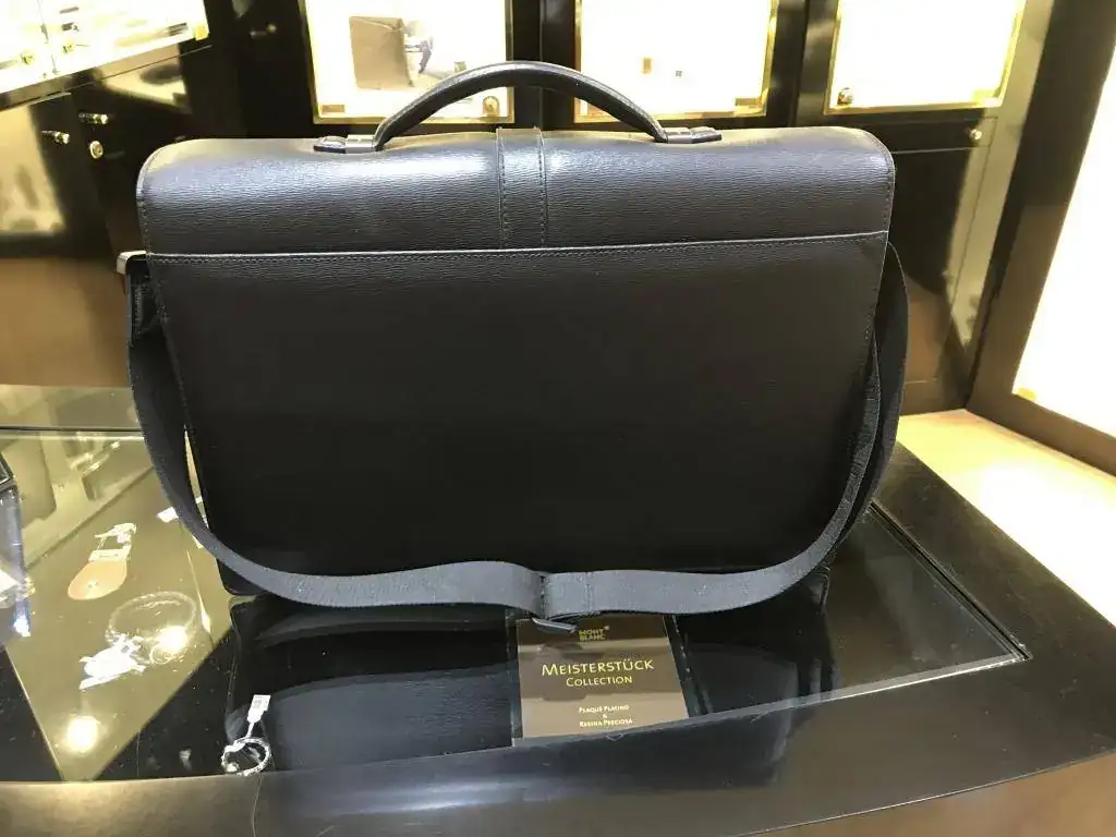 La nueva versión 4810 Westside combina diseño depurado con funcionalidad: el maletín con dos fuelles, elaborado en piel de becerro con el emblemático grabado Montblanc y detalles de bronce brillante, esconde un espacioso interior diseñado para llevar bien organizados documentos A4, un ordenador portátil o una tablet y otras pertenencias. El espacioso bolsillo trasero permite acceder fácilmente a artículos esenciales, como pasajes, documentos y llaves. Se lleva de diferentes formas gracias a la cómoda asa de piel, la bandolera negra ajustable y extraíble con la marca y el sistema satélite adaptable a trolley.