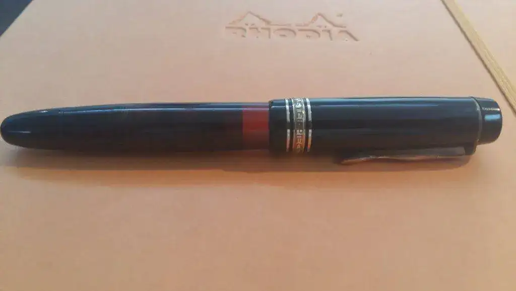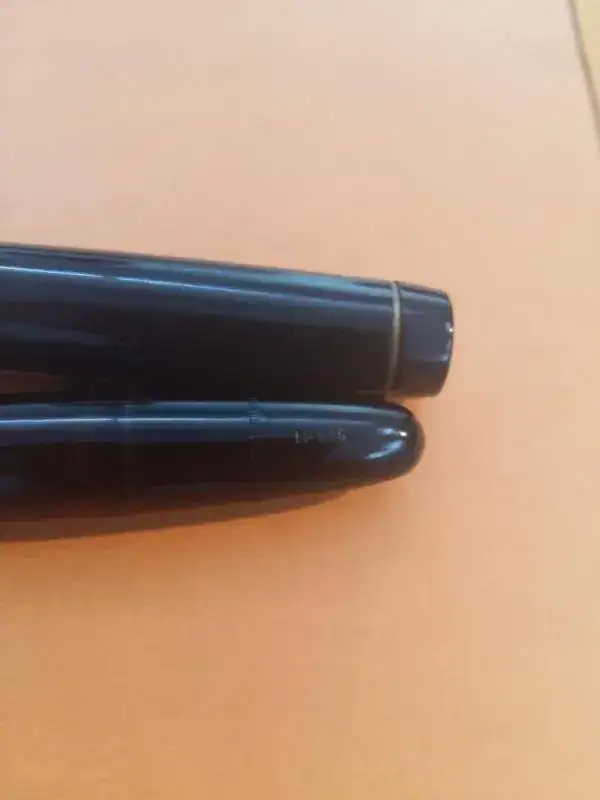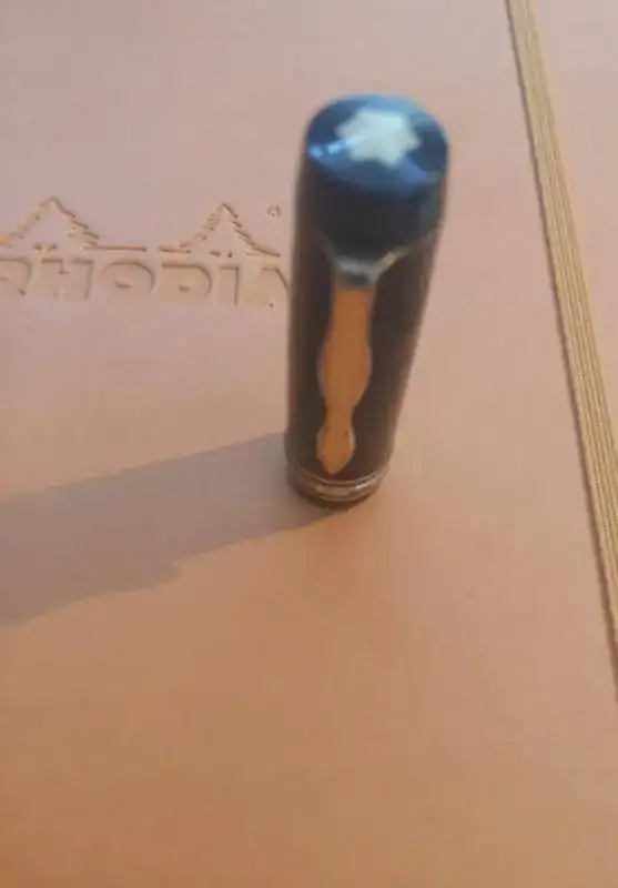 El capuchón parece ser de una MB Masterpiece 136, del tipo “Short Cap Top”, el tope superior es más estrecho que en otros modelos similares (por lo que he leído, tiene su función para los soldados, que al llevar la pluma en el bolsillo pudieran cerrar la solapa sin que sobresaliera.