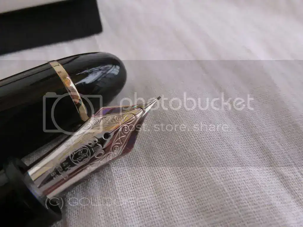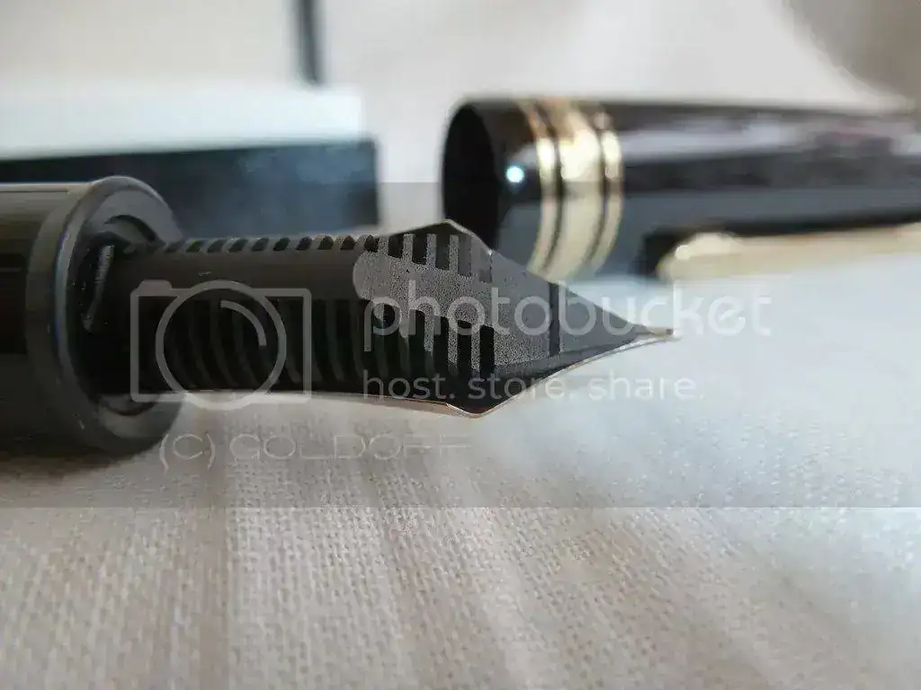 El plumín presenta cierta decoloración irisada en la parte del oro, pero es un tema estético que no afecta a su perfecto funcionamiento. En todo caso, lo tengo en cuenta para su valoración.