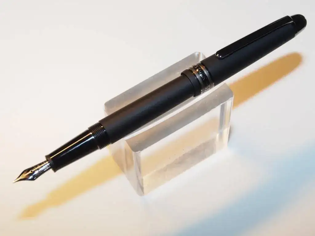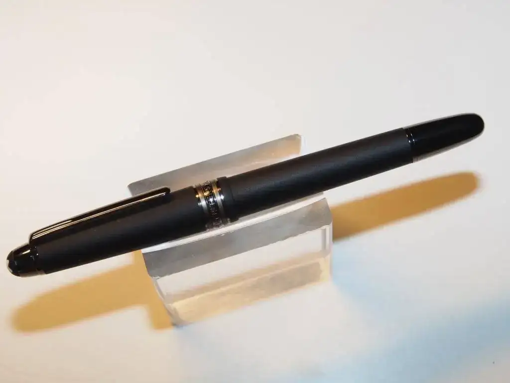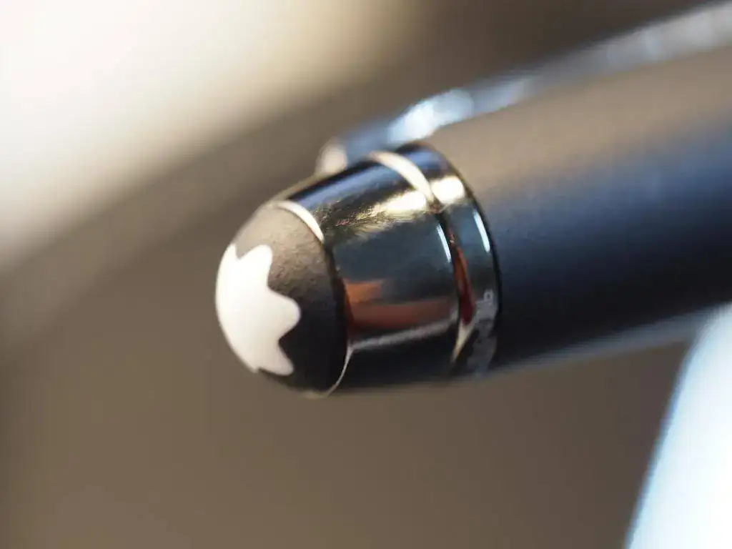Uno de los últimos lanzamientos de Montblanc ha venido a parar a mis manos en forma de regalo de cumple. Es la Montblanc Classique (o 145) en el modelo "Ultrablack". Como se ve, la terminación de la resina es de color negro mate, el plumín es de oro bañado en rutenio (como el de la edición limitada Defoe, por ejemplo). Los adornos (culote, clip, anillos) son de acero ruteniado y carga con convertidor o cartuchos. Un leve toque de "maquillaje" para la 145, sin salir del negro, pero escribe muy bien, como debe ser. Es plumín es un F, pero tan jugoso que parece más bien un M.