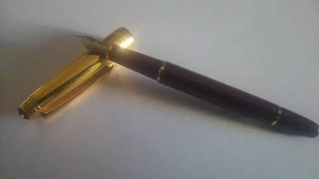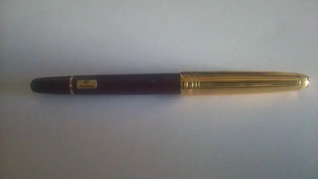 Procedente del stock antiguo de una vieja papelería que acaba de cerrar, saco a la venta una estilográfica "Montblanc Meisterstück Solitaire Douè Classique Vermeil Bordeaux Nº144". En cristiano: tamaño 144, cuerpo en resina color burdeos y capuchón vermeil, es decir, plata maciza (marcada “925”), bañada en oro.