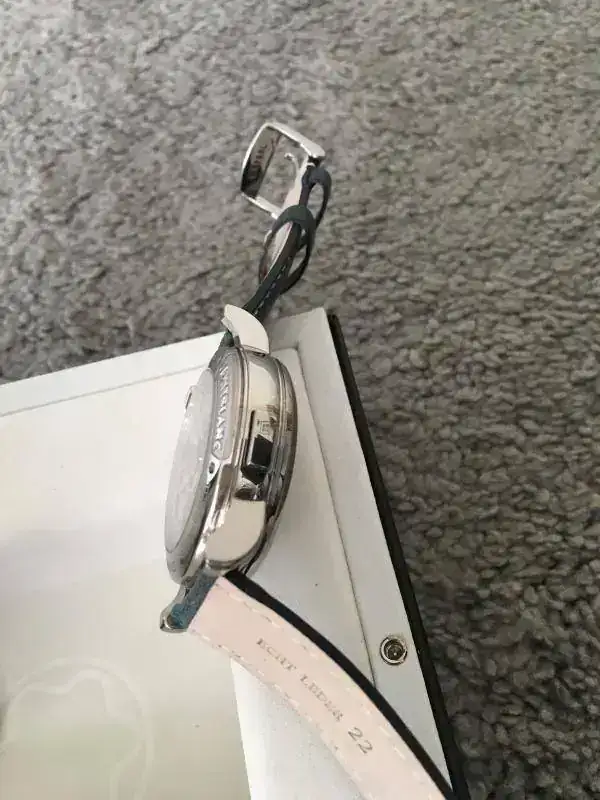 Diametro: 43mm, pero como el dial y el bisel son tan finos, parece un pelín menos. Muy cómodo para muñecas pequeñas y grandes.