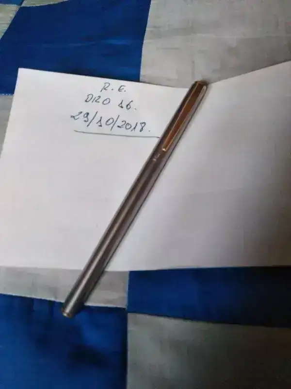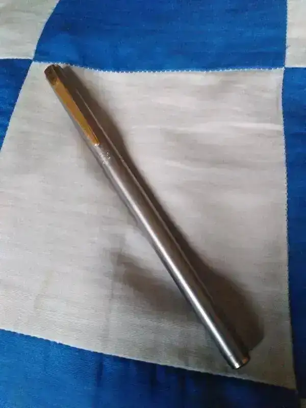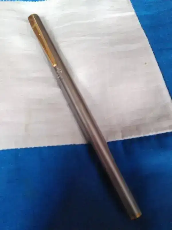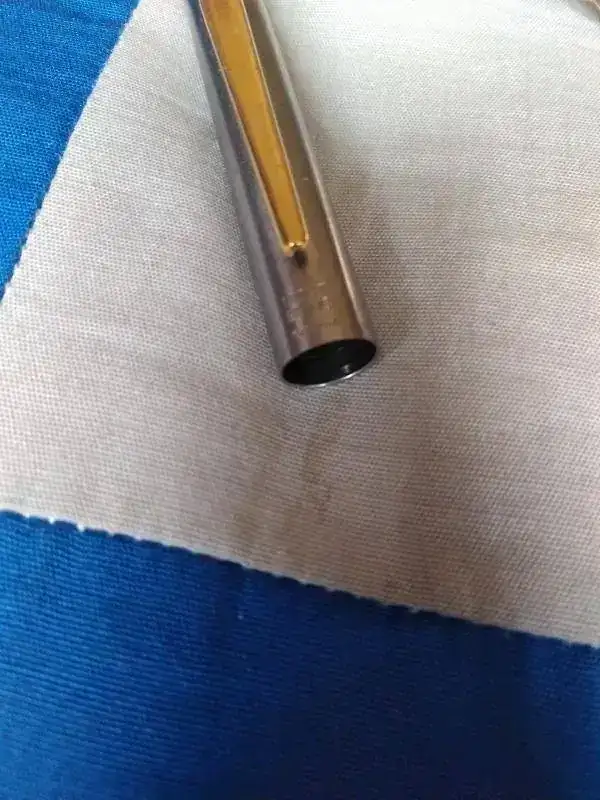 Está usada, pero en buen estado, tiene dorados el clip y el aro del final del cuerpo. Tiene los dos estrellas blancas en los dos extremos: