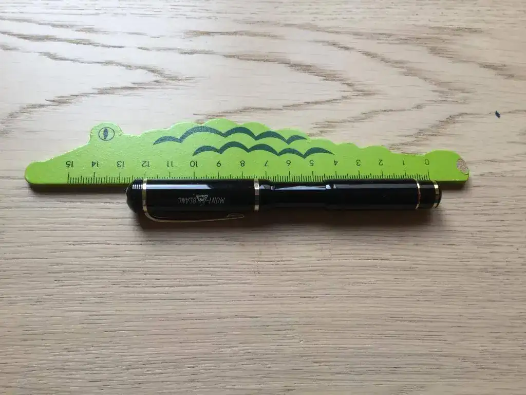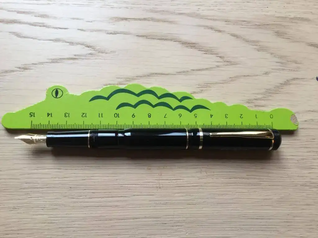 Con el capuchón posteado es una pluma de tamaño muy cómodo; con el plumin retraído es súper portátil. Si tienen dudas con las medidas, os ayuda el cocodrilo.