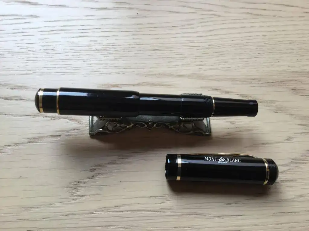En la red podéis ver cómo funciona: el plumín se retrae moviendo el cuerpo como en las Moore safety. Con el plumin extraido es totalmente firme; cerrada, le queda cierto juego al capuchón, pero cierra mejor que cualquier safety (es una pluma moderna, al fin y al cabo). Es la manera de tener una pluma vintage sin ningún riesgo de fuga o incomodidad. Gran diseño este de MB, la verdad.