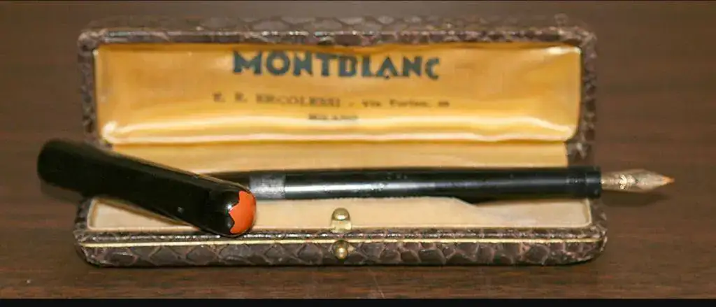 Un forero del FPN de Hamburgo, donde está la matriz de MB, acaba de colgar unas fotos caseras de la pluma con la que MB va a celebrar su 110 aniversario. Por fin, una pieza para conocedores: de ebonita, con forma de Safety roja con negro, clip de serpiente sin ojos rojos, logo antiguo con monte nevado, plumín pequeño, rosca junto al plumin, en fin, una rouge et nour decente. Lo único que no me gusta es que el plumin sea cromado y no tenga diseño antiguo y que el culote sea redondeado y no plano, pero esto así es: MB tiene miedo de hacer réplicas exactas de plumas antiguas porque se acabarían vendiendo como originales.