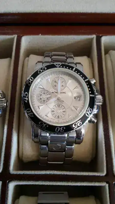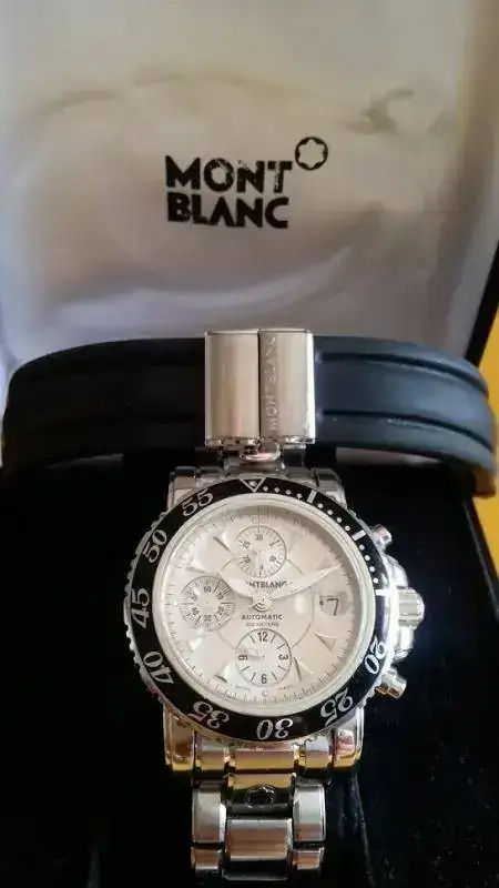 Hola compañeros, hoy pongo a la venta este Montblanc Sport Chrono Automático con Armis y Caucho, con toda su dotación, a saber : armis completo, caucho, caja papeles y caja exterior de cartón. El estado estético y de marcha es muy bueno sin apenas marcas reseñables, solo alguna en el cierre.
