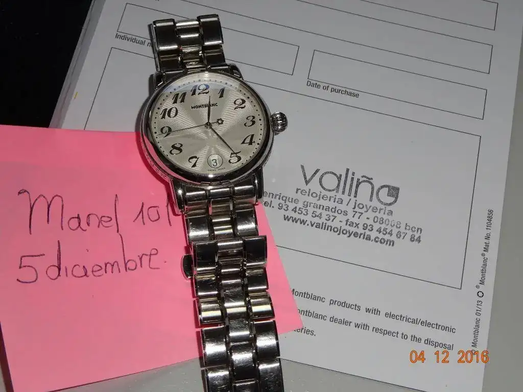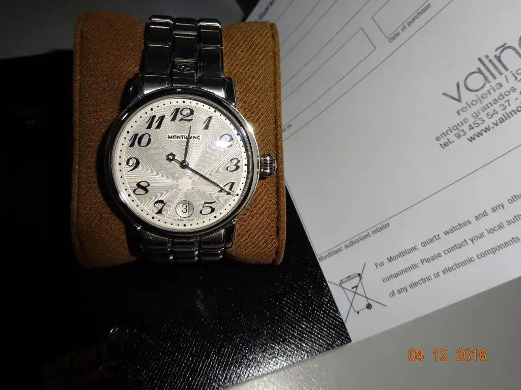 Marca: Montblanc Modelo:Star 7042 Año de compra (nuevo): 2013 Año de compra por quien lo vende:Soy su único dueño. Estado: (nuevo/usado)Usado pero impecable Movimiento:Cuarzo Caja (medidas):35,5 mm Cristal:Zafiro Esfera: Blanca Estuche? Si Documentación y tipo de la misma: Tarjeta garantía sellada en relojería de BCN ciudad ¿Garantía vigente? No ¿Envío incluido? Si Forma de envío: MRW