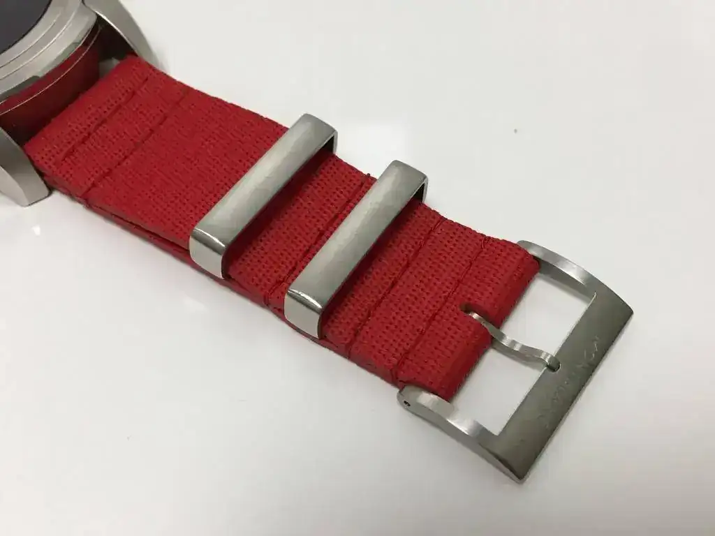 Una elegante correa de caucho rojo con detalles de acero cepillados ofrece mayor elasticidad y es perfecta para llevar en toda ocasión, incluso para hacer deporte (Ancho: 22 mm/Largo: 65-170 mm).