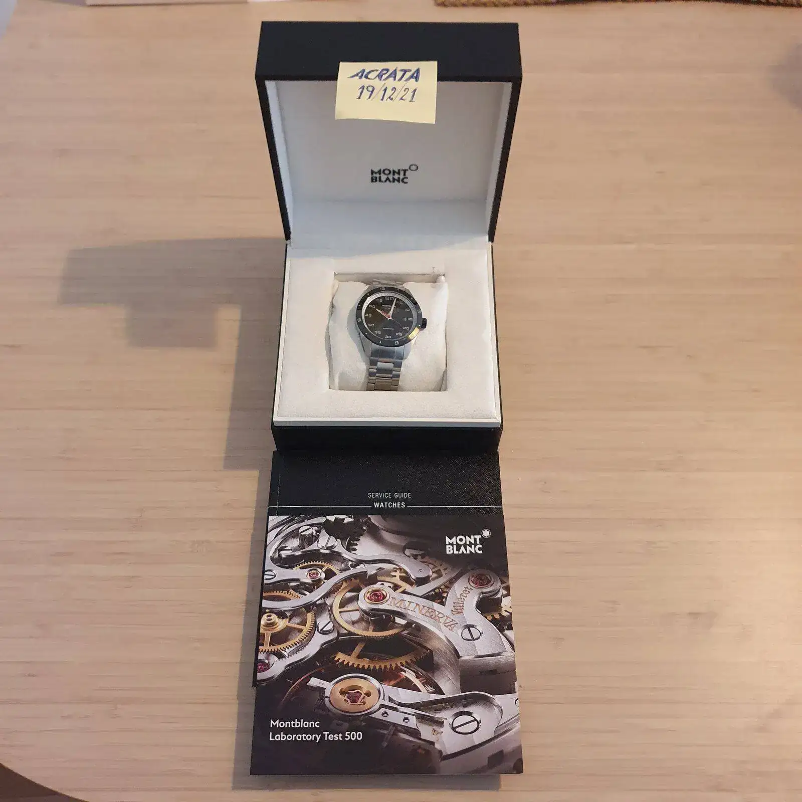 Buenos días: Vendo este Montblanc, que sin perjuicio de que la fecha de compra es de 2018, el uso ha sido casi nulo. Indicaros que no hay un precio parecido al que pongo. El más barato que he encontrado en la red, era sin documentación. No quiero cambios, sólo aceptaría un glycine combat con correa de caucho como parte de pago. Si es trato en persona en Barcelona, o bien en Madrid mañana día 20 por la tarde , o día 21 hasta el mediodía podría ajustar el importe.