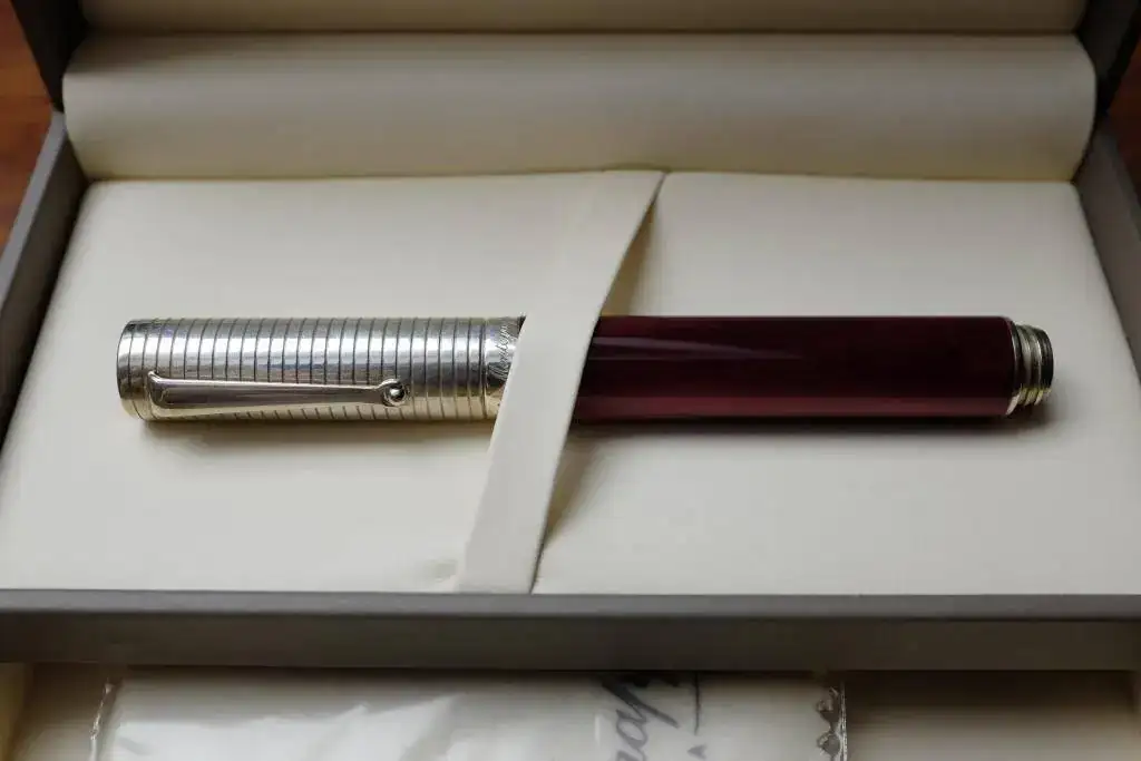 Vendo Montegrappa Duetto Espressione con punto M. Es una pluma con capuchón macizo de plata de ley, y por su belleza, figura en el libro editado por Barbro Garenfeld: "El gran libro de la estilográfica". Ha tenido escasísimo uso, y viene con su caja, libro y documentación. Está en un estado NOS.