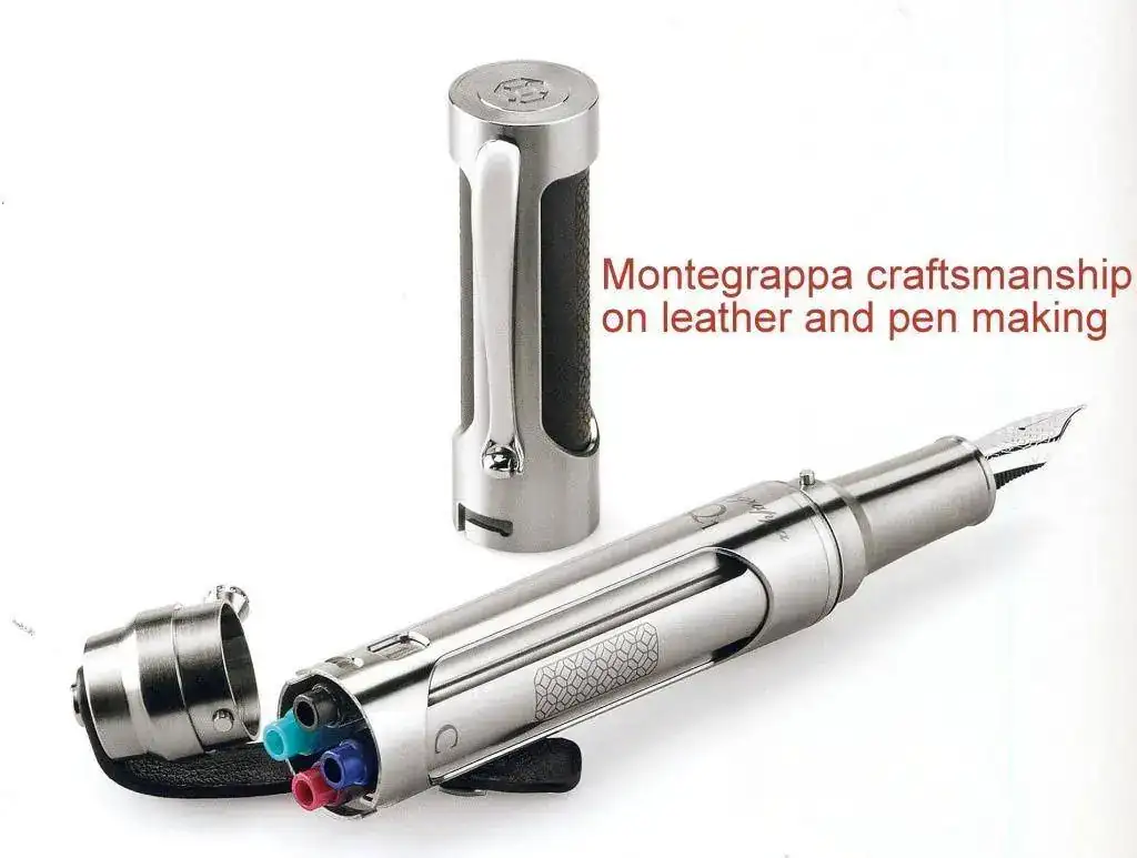 La prestigiosa firma Montegrappa ha lanzado su propuesta de solución para el "problema" del cambio de color de la tinta en las estilográficas. El invento se ha bautizado como Q1 y es una pluma multicartucho cuyo cuerpo recuerda mucho a un revólver y puede albergar 4 cartuchos de distinto color (o los 4 iguales, aunque maldita la gracia). Desconozco el funcionamiento preciso, pero ya hay algún video en el que se enseña como limpiar esta pieza. He aquí algunas fotos ilustrativas. Se puede obtener más información en Iguana Sell, uno de los patrocinadores de este foro.