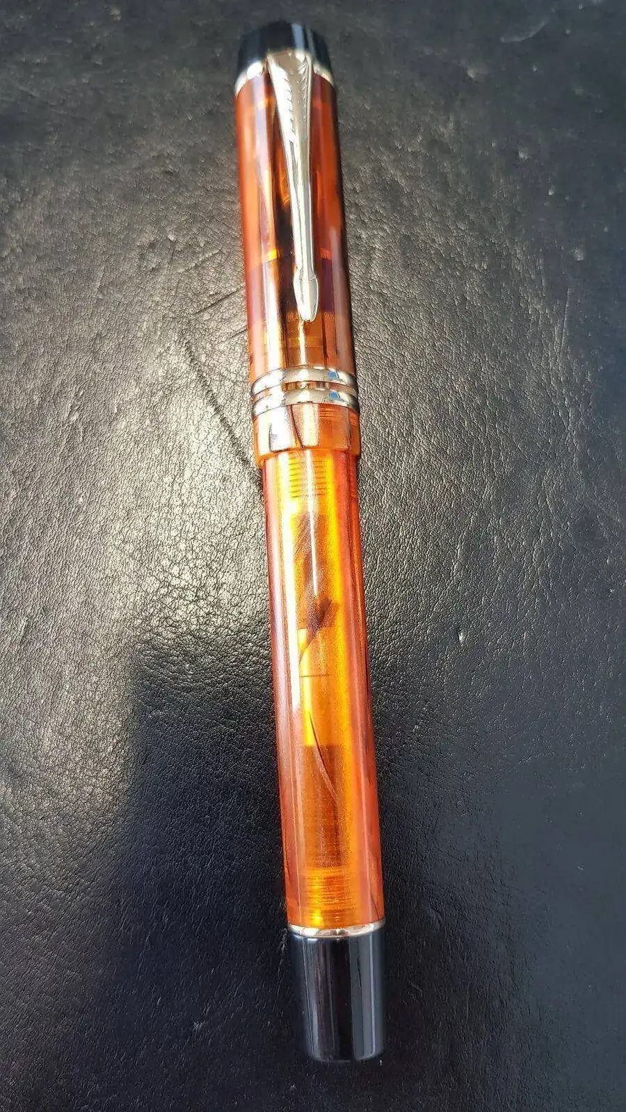 Os pongo una revisión de la recién llegada, Moonman M600. Es una pluma inspirada en plan Parker Duofold muy bien resuelta. La resina del cuerpo es muy bonita y transparenta el interior. El cierre del capuchón es a rosca y está bien mecanizado.