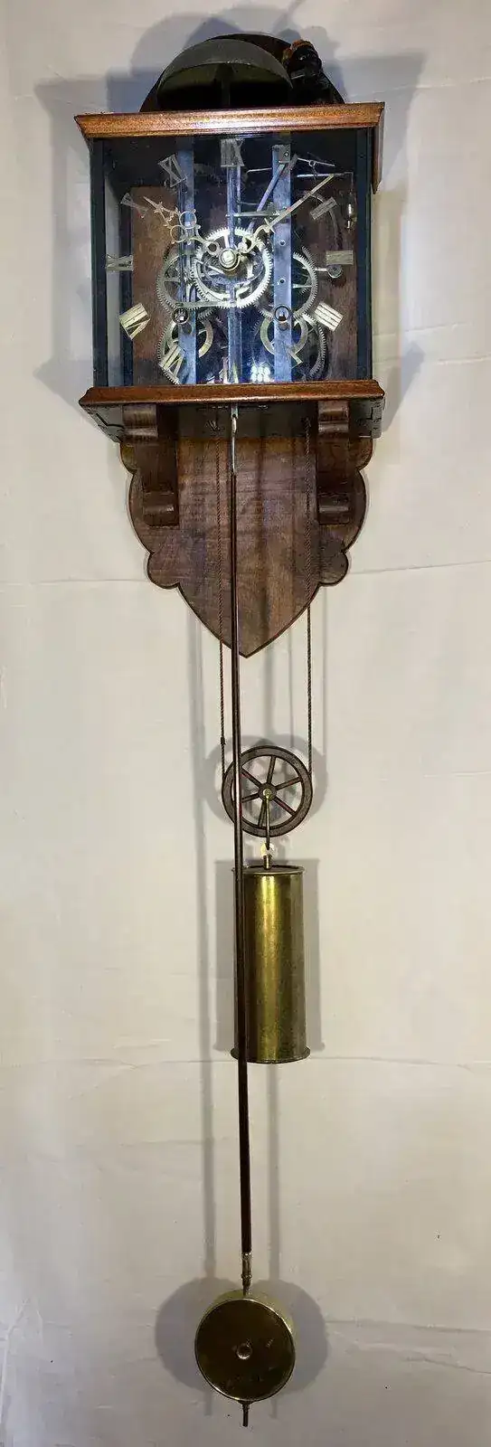 Encontré una pieza similar preparada hace muchos años, con una sola pesa. También queda bien. Materiales empleados: Acero, latón/bronce, cristal, madera y el cañamo de la cuerda.
