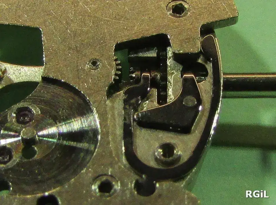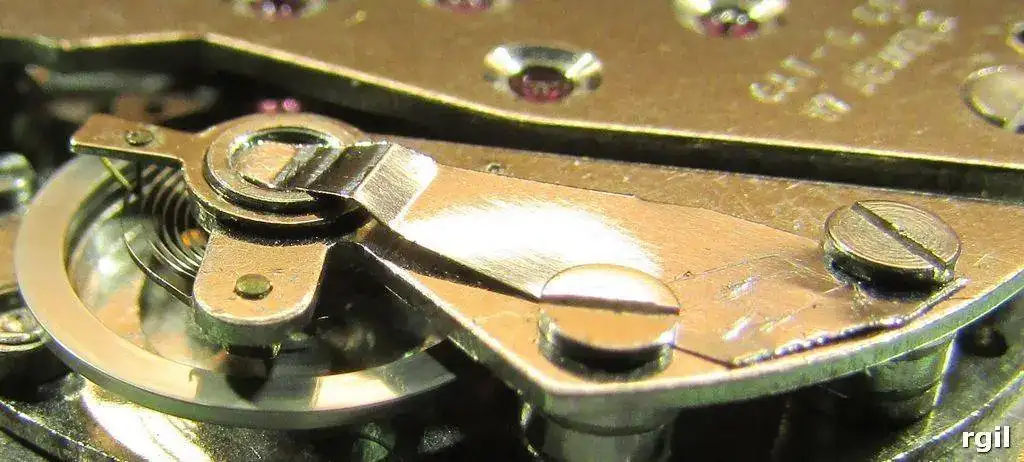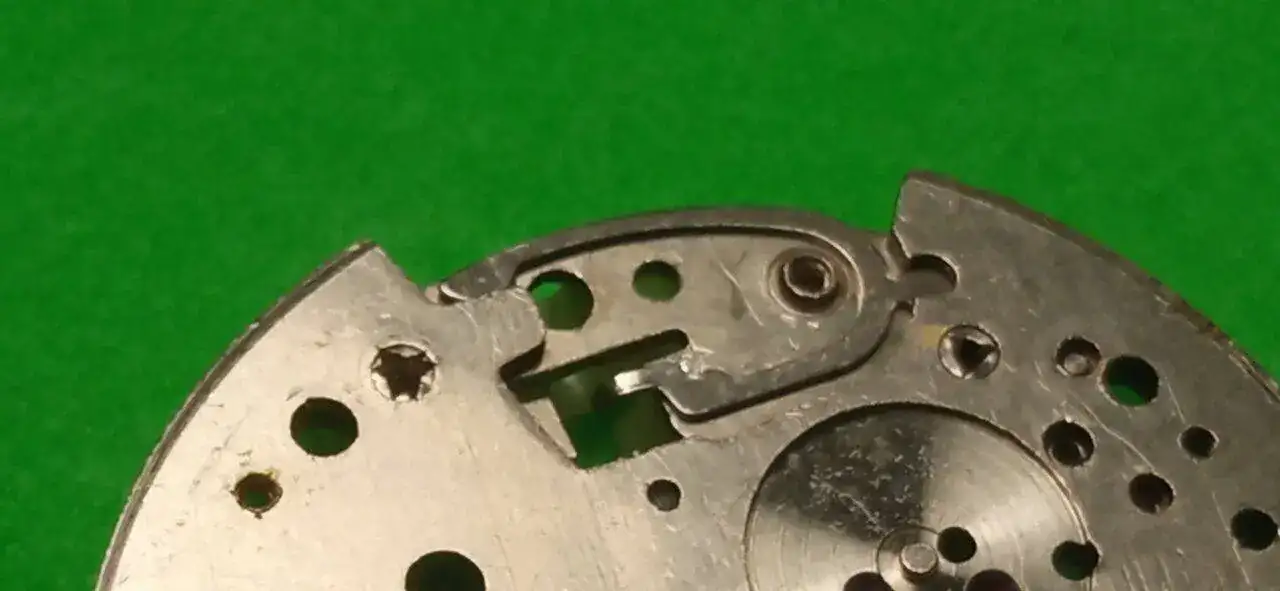 Aquí puedes ver un detalle del resorte colocado en el lado de la platina.
