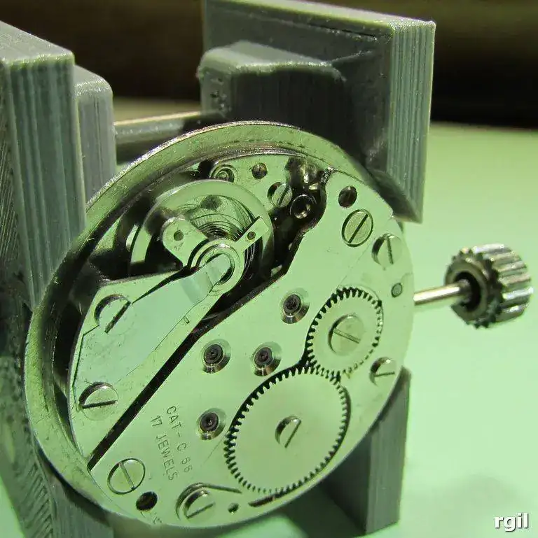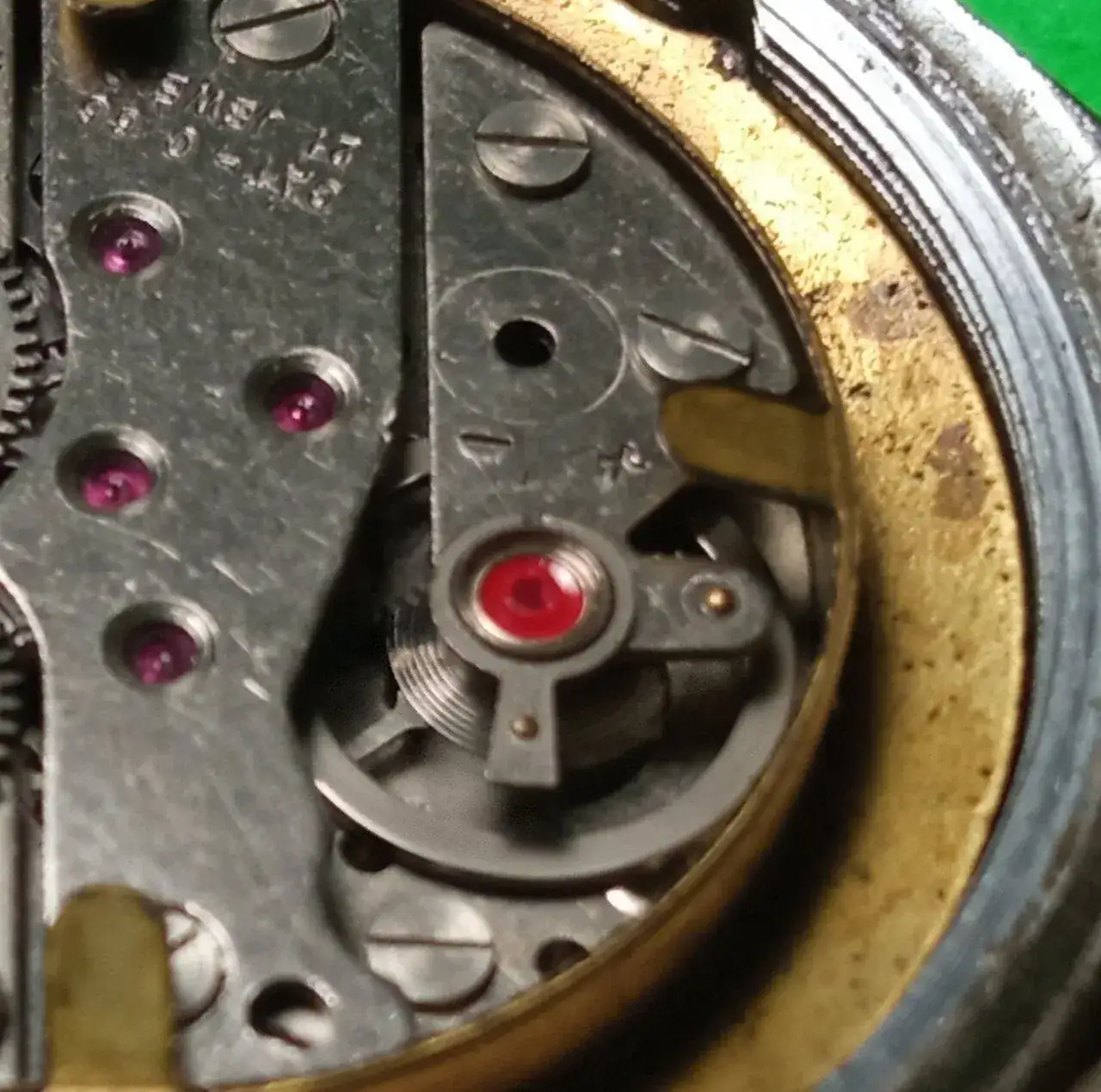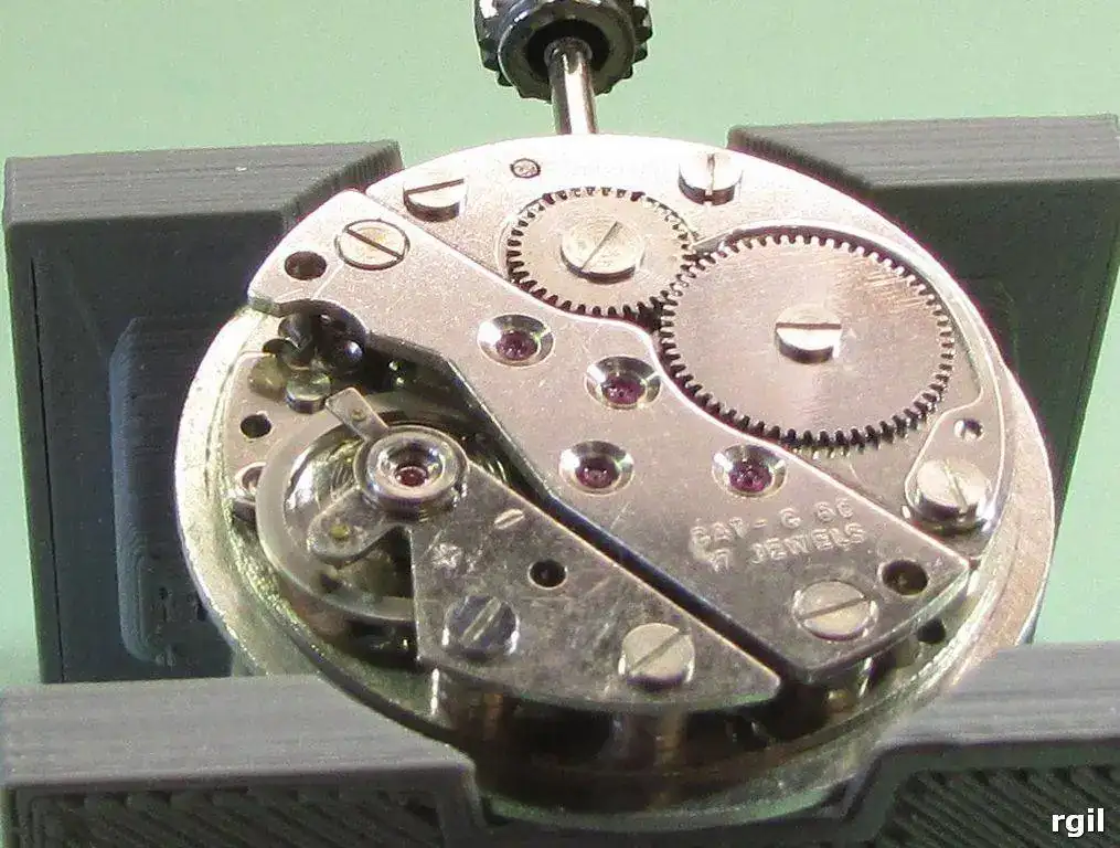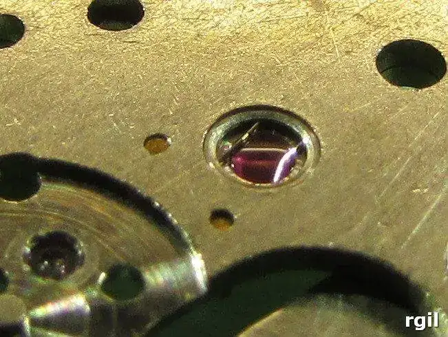 Si lleva piedra y contra-piedra sin anti-choque, (lo normal en los vintages mas antiguos) normalmente se desmonta el volante de su puente, para que el orificio de la piedra quede accesible para aceitar. En el lado de la platina, al quedar separada del volante, este orificio es accesible sin mas.