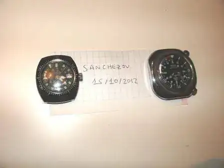 Un Mortima Comandant de Bord: Automático de remonte manual, creo. Necesita ser reparado. Este es mucho mas grande que el otro y de caja cuadrada. Está ha sufrido mucho mas a nivel estético, sobretodo la caja de detrás, aunque por delante no esta muy mal... la caja por detrás no parece de acero sino de un plástico/resina con un baño plateado o algo así…. quizás le sirva para piezas a alguien.