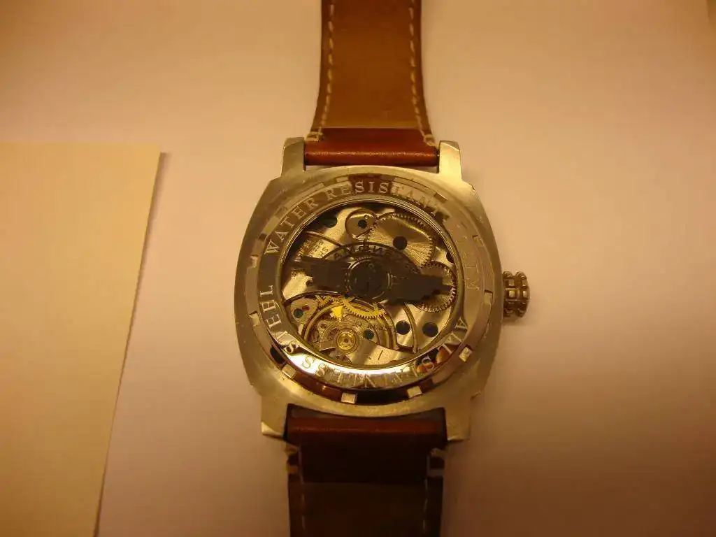 Pongo en venta este modelo por falta de uso. El reloj ha sido MUY POCO usado, por lo que tiene las típicas rayas. La esfera tiene dos rayas, que desafortunadamente no he sido capaz de captar con la cámara. Entrego con una correa en piel adicional y la tapa metálica de sustitución por la de vidrio.