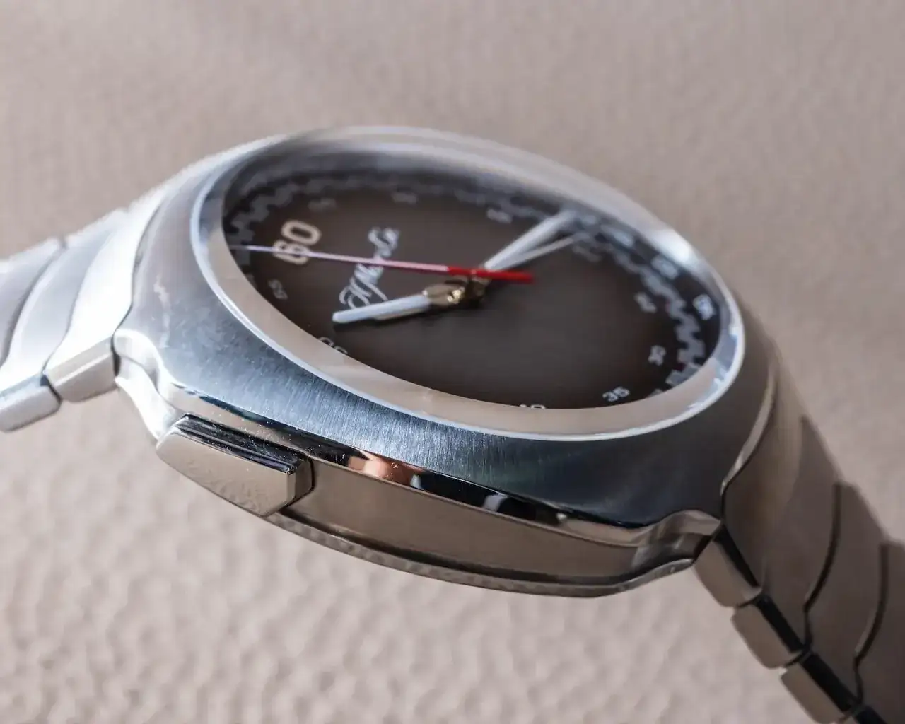 Así de primeras me vienen a la cabeza cajas Genta, diseños de esfera racing setenteros, brazaletes lobster (sort of)... Ya sé que dicho así parece que veo en él un refrito poco original, pero qué va ¡¡Me encanta!!