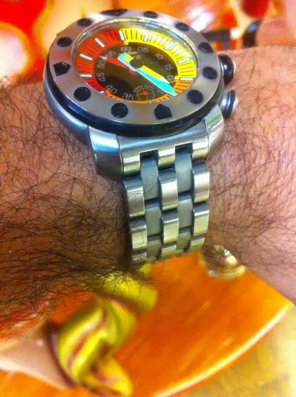 Lo del triple bisel impresionante, además giratorios el no va más, un taquímetro, uno para buceo y otro usos horarios.