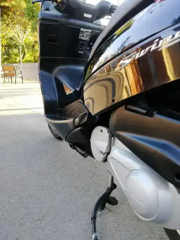 Siempre en garaje. Se nota por la transparencia de supantalla. Es una scooter cuidada. Labatería tiene poco mas de un año.