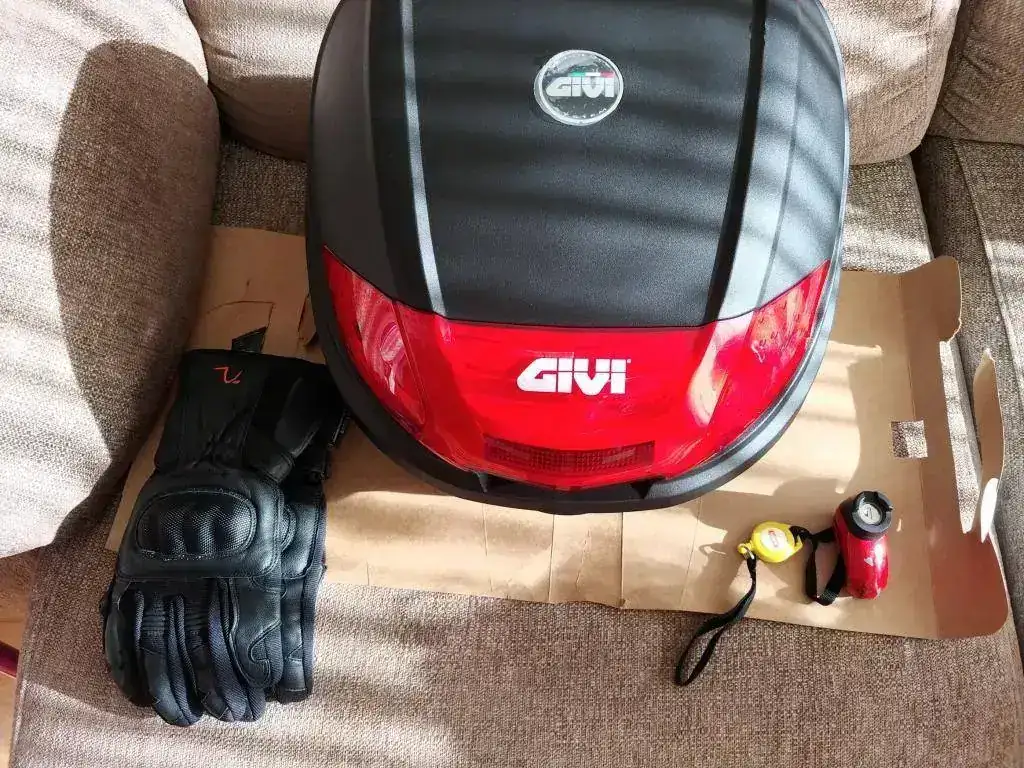 Como no voy a usar moto se regala todo: Casco como nuevo talla M, guantes , pinza antirrobo y baúlGivi nuevo a estrenar no se ha llegado a montar.