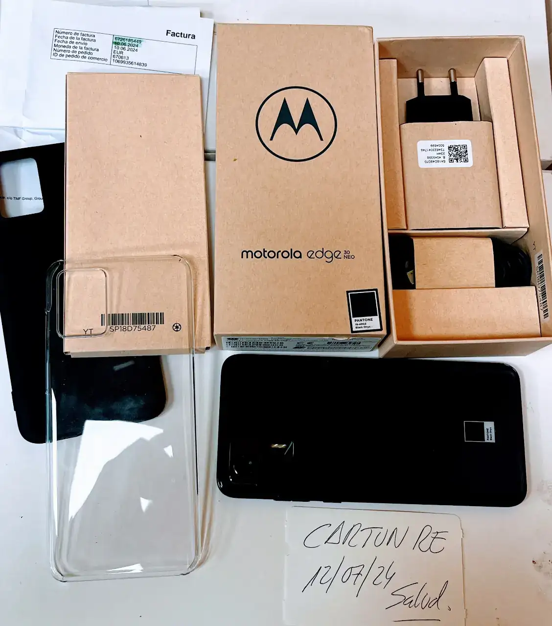 Buenos días, con permiso de la moderación, pongo en venta este Motorola Edge 30 Neo 128 GN, absolutamente nuevo. Cuenta con su factura para sus tres años de garantía, dos fundas nuevas y cargador rápido de 68w. Un teléfono espectacular, a un precio fantástico.