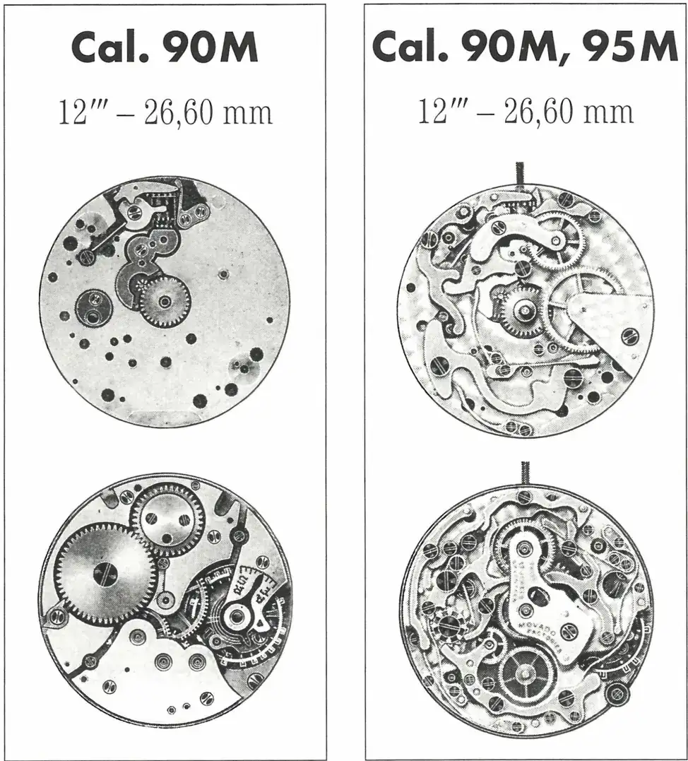 El M95 es básicamente un M90 con contador de horas, creado por Frederic Piguet. Permaneció en el catálogo de la marca desde el 39 hasta el 70. En ese momento, fue sustituido por un tal "El Primero" de Zenith, seguro que os suena.