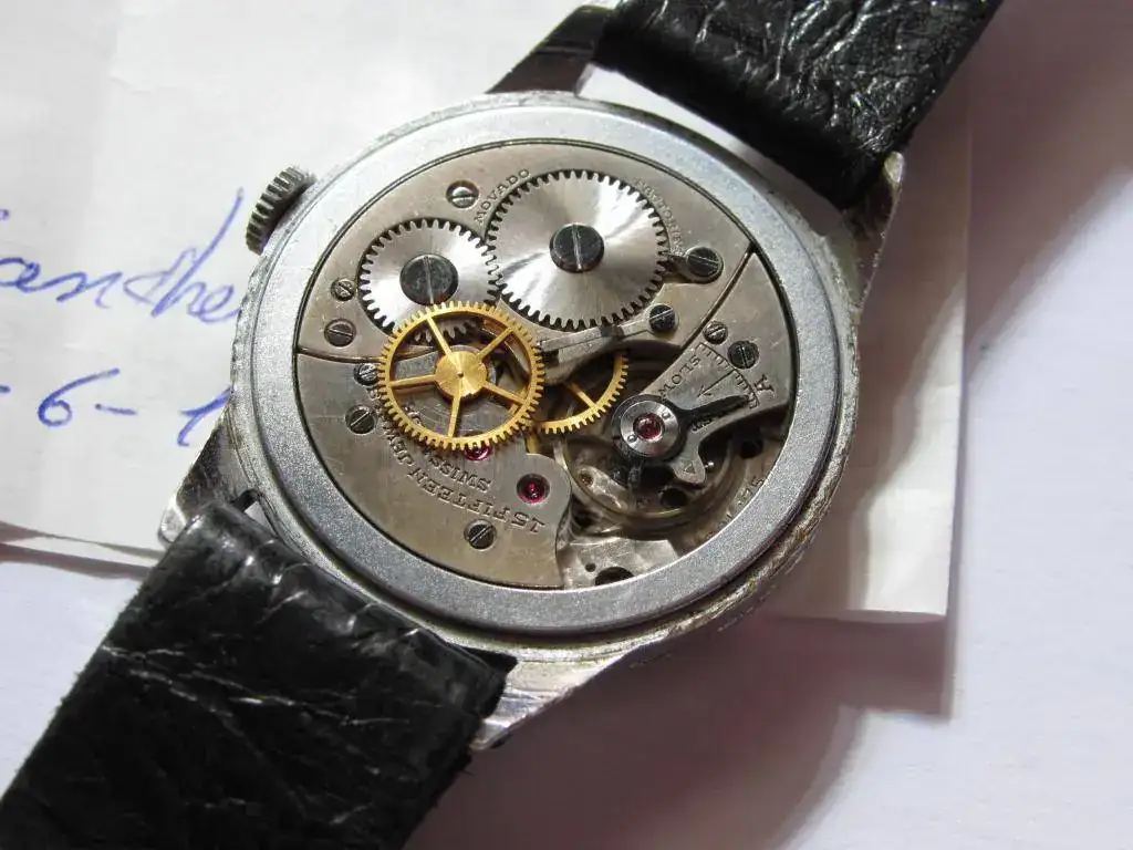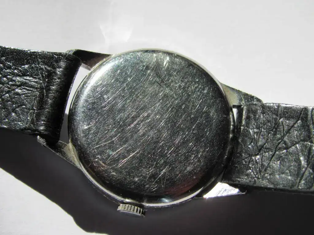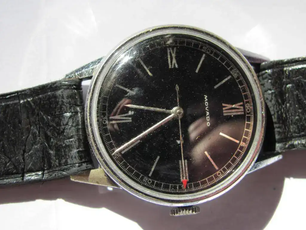 Vendo este Movado calibre 75 manual. Caja cromada con una decoloración en un asa, la derecha a las 5. Mide 31/32mm sin corona. La esfera esta en buen estado (las manchas son motas de polvo). Tiene una autonomía de marcha de unas 35 horas. ATENCION: tiene una tara que es que no se sujeta la corona para ponerlo en hora, es decir tienes que aguantar la corona para fijar la hora y otra cosa es que al darle cuerda a veces suena un “crick” como si saltase un piñon (no sé si se me entiende). Habría por tanto que hacerle una revisión. El precio por tanto que le pongo es de 70€ envío incluido por Correos y certificado.