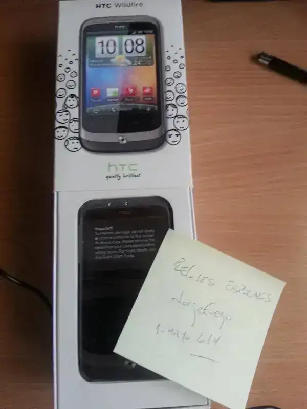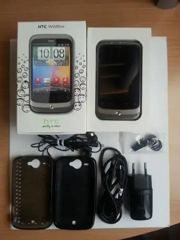 smartphone htc wildfire libre,de origen vodafone liberado por imei,estado muy bueno ya que ha estado protegido con carcasa semiriguida y la pantalla siempre con plastico protector que aun conserva. Lo envio con caja ,instrucciones y cargador,los auriculares no son los originales por higiene pero mando unos de nokia tipo boton nuevos.Regalo tambien dos carcasas protectoras de la foto.