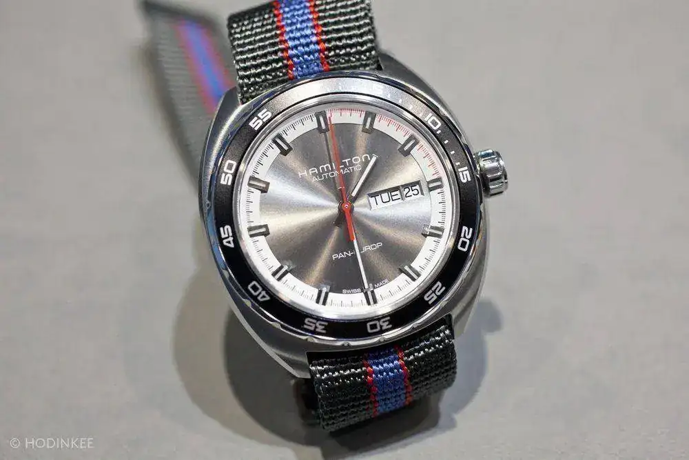 El acabado de la correa Nato del Hamilton se ve espectacular, así como el gris de la esfera.