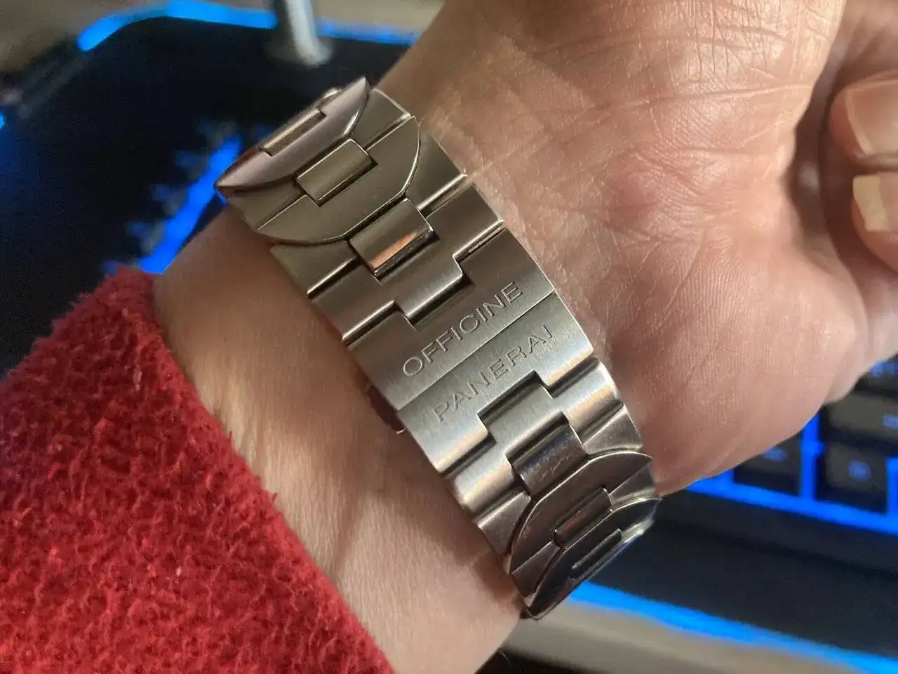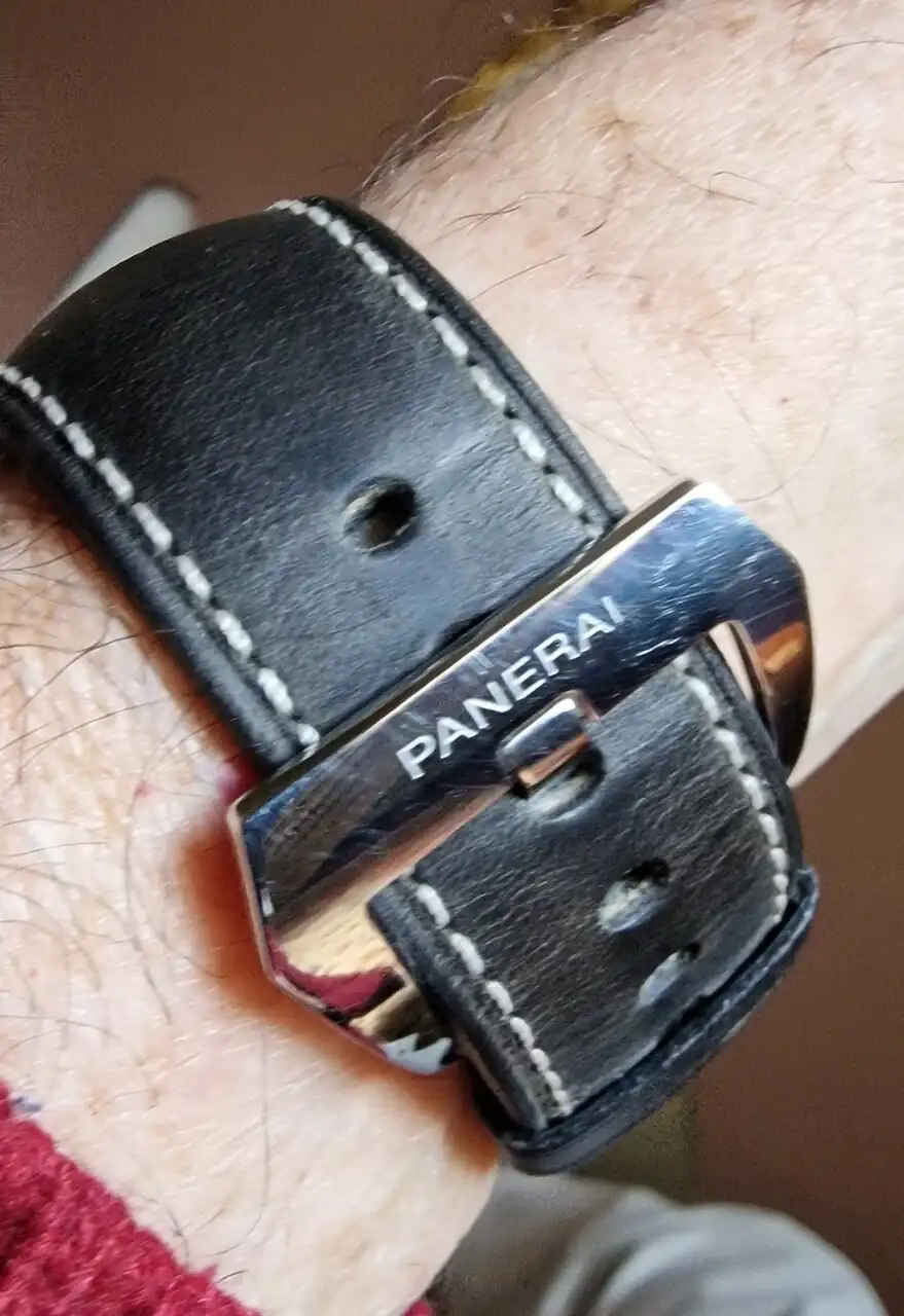 puesto que una gran parte de la diversión relacionada con este hobby nuestro está directamente relacionada con la inmensa cantidad de posibles combinaciones correa/hebilla que tenemos disponibles, me gustaría que compartiésemos cómo “cerramos” nuestros Panerai a la muñeca. A ver si hay más Paneristi que también personalizan su hebilla, o si por el contrario sois más de quedaros con la hebilla relativamente sosa marca “Panerai” que el reloj lleva de serie.